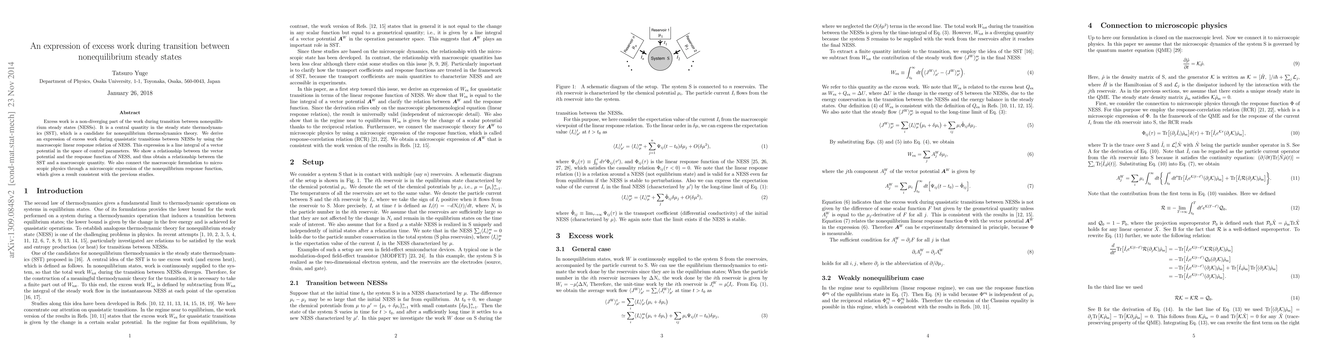 This paper derives an expression for excess work during quasistatic transitions between nonequilibrium steady states (NESSs) using macroscopic linear response theory. The expression is a line integral involving a vector potential, establishing a link between steady state thermodynamics and macroscopic quantities, while also connecting it to microscopic response functions.