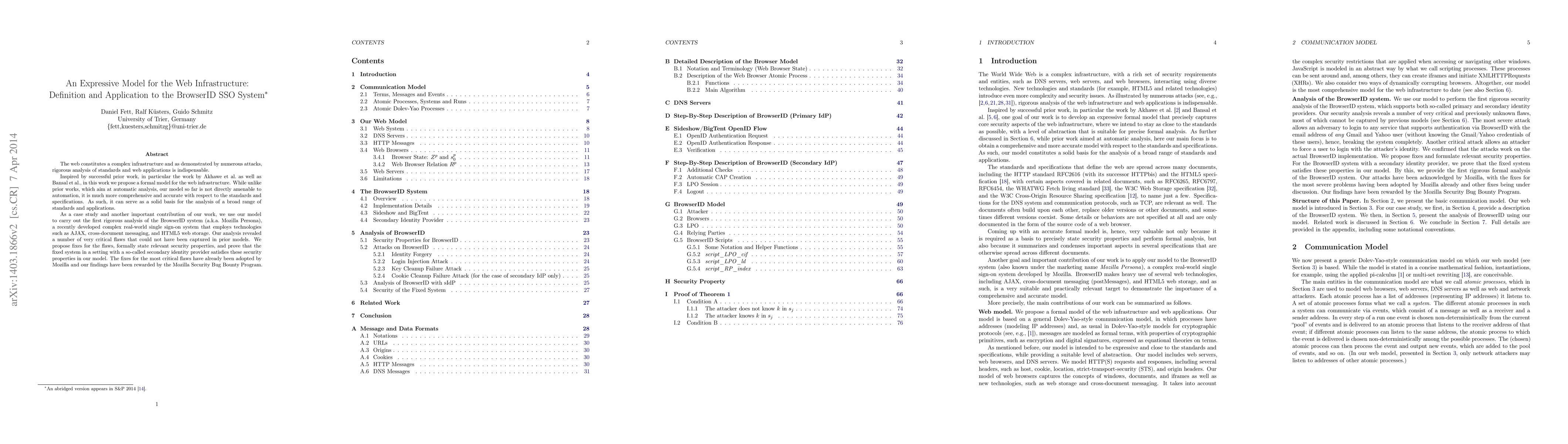 Researchers developed a comprehensive model for the web infrastructure to improve security analysis of standards and applications, highlighting critical flaws in the BrowserID SSO system that were later adopted by Mozilla.