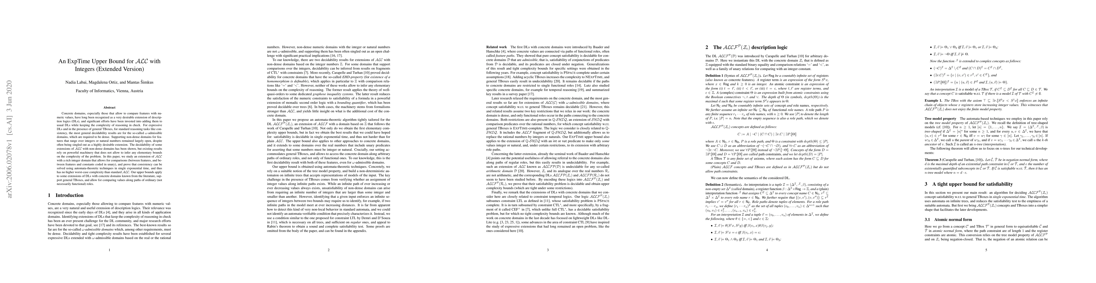 Concrete domains, especially those that allow to compare features with numeric values, have long been recognized as a very desirable extension of description logics (DLs), and significant efforts have been invested into adding them to usual DLs while keeping the complexity of reasoning in check. For expressive DLs and in the presence of general TBoxes, for standard reasoning tasks like consistency, the most general decidability results are for the so-called $\omega$-admissible domains, which are required to be dense. Supporting non-dense domains for features that range over integers or natural numbers remained largely open, despite often being singled out as a highly desirable extension. The decidability of some extensions of $\mathcal{ALC}$ with non-dense domains has been shown, but existing results rely on powerful machinery that does not allow to infer any elementary bounds on the complexity of the problem. In this paper, we study an extension of $\mathcal{ALC}$ with a rich integer domain that allows for comparisons (between features, and between features and constants coded in unary), and prove that consistency can be solved using automata-theoretic techniques in single exponential time, and thus has no higher worst-case complexity than standard $\mathcal{ALC}$. Our upper bounds apply to some extensions of DLs with concrete domains known from the literature, support general TBoxes, and allow for comparing values along paths of ordinary (not necessarily functional) roles.