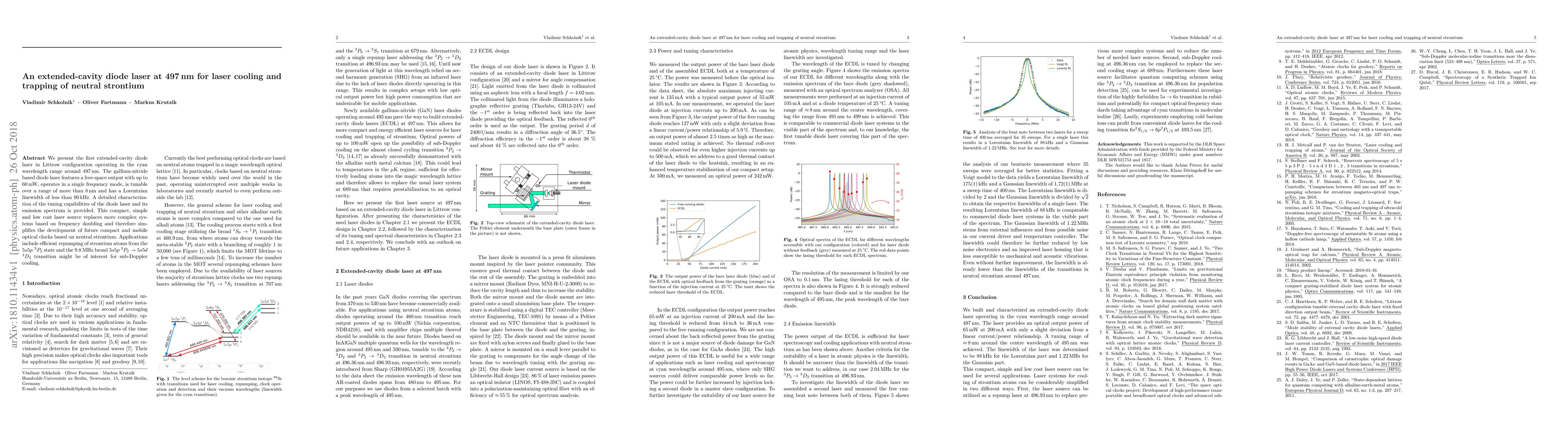 This paper details the development of an extended-cavity diode laser operating at 497 nm for cooling and trapping neutral strontium atoms, featuring a tunable range and efficient repumping capabilities, which simplifies the construction of compact optical clocks. The laser's single-frequency mode and low linewidth enhance its potential for sub-Doppler cooling applications.