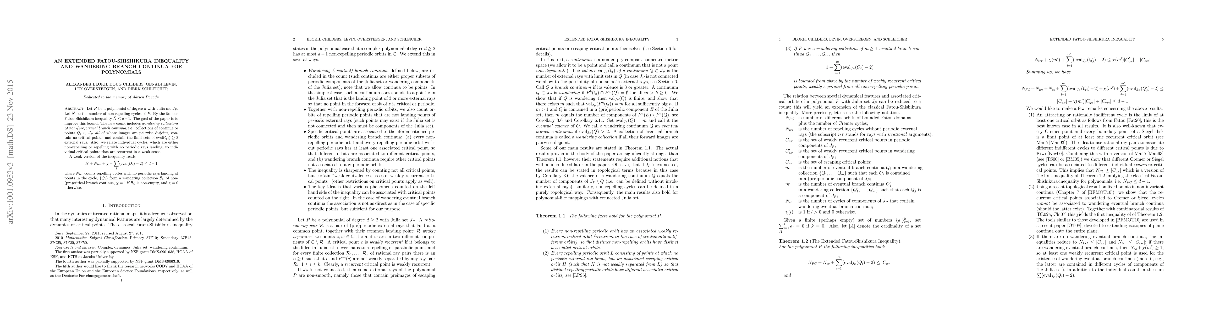 Let $P$ be a polynomial of degree $d$ with Julia set $J_P$. Let $\widetilde N$ be the number of non-repelling cycles of $P$. By the famous Fatou-Shishikura inequality $\widetilde N\le d-1$. The goal of the paper is to improve this bound. The new count includes \emph{wandering collections of non-precritical branch continua}, i.e., collections of continua or points $Q_i\subset J_P$ \emph{all} of whose images are pairwise disjoint, contain no critical points, and contain the limit sets of $\mathrm{eval}(Q_i)\ge 3$ external rays. Also, we relate individual cycles, which are either non-repelling or repelling with no periodic rays landing, to individual critical points that are recurrent in a weak sense. A weak version of the inequality reads \[ \widetilde N+N_{irr}+\chi+\sum_i (\mathrm{eval}(Q_i)-2) \le d-1 \] where $N_{irr}$ counts repelling cycles with no periodic rays landing at points in the cycle, $\{Q_i\}$ form a wandering collection $\mathcal{B}_\mathbb{C}$ of non-precritical branch continua, $\chi=1$ if $\mathcal{B}_\mathbb{C}$ is non-empty, and $\chi=0$ otherwise.