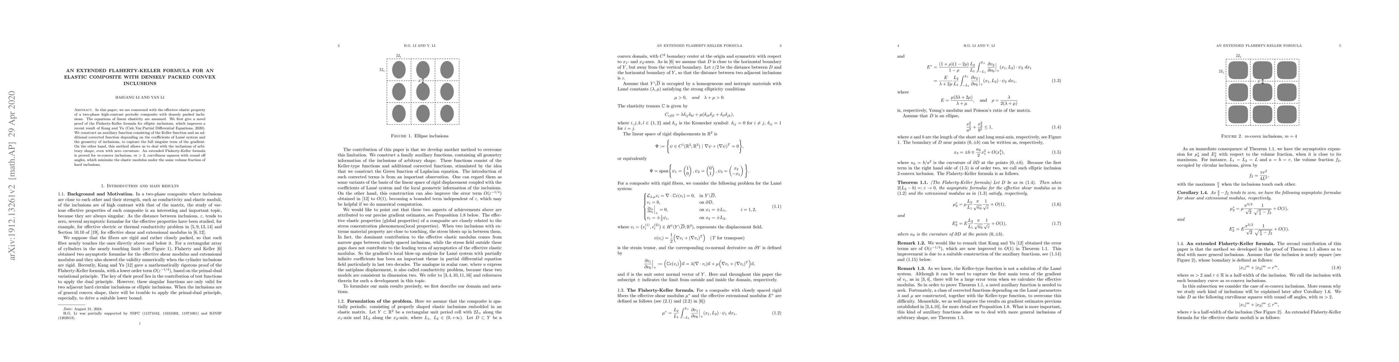 This paper develops an extended Flaherty-Keller formula for the effective elastic properties of an elastic composite with densely packed convex inclusions. It introduces an auxiliary function to accurately capture the singular gradient term and proves the formula for m-convex inclusions, including curvilinear squares with rounded corners.