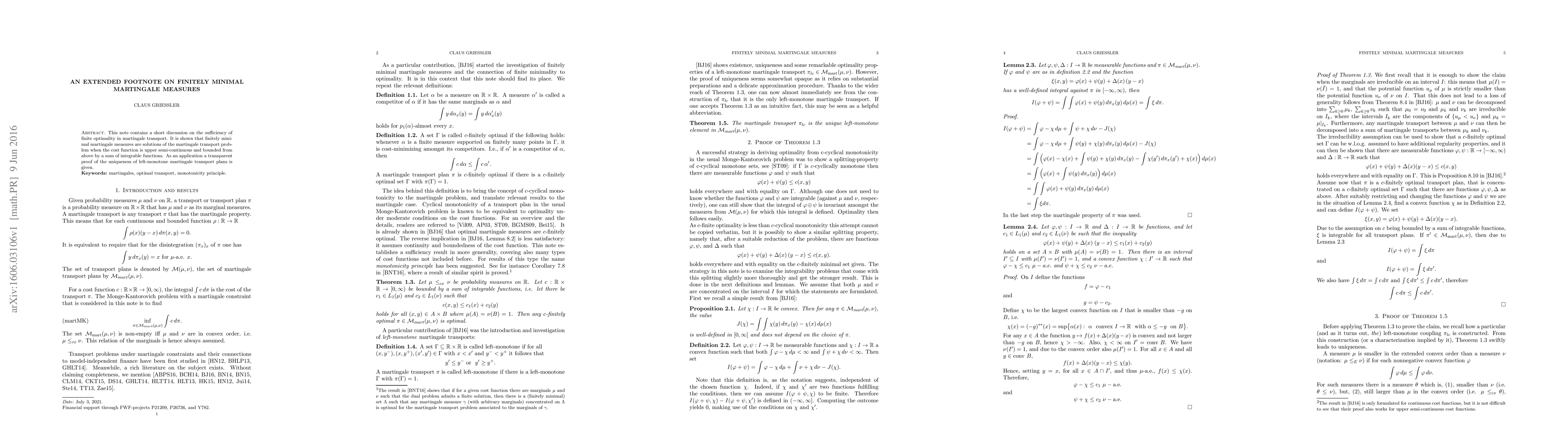 This note contains a short discussion on the sufficiency of finite optimality in martingale transport. It is shown that finitely minimal martingale measures are solutions of the martingale transport problem when the cost function is upper semi-continuous and bounded from above by a sum of integrable functions. As an application a transparent proof of the uniqueness of left-monotone martingale transport plans is given.