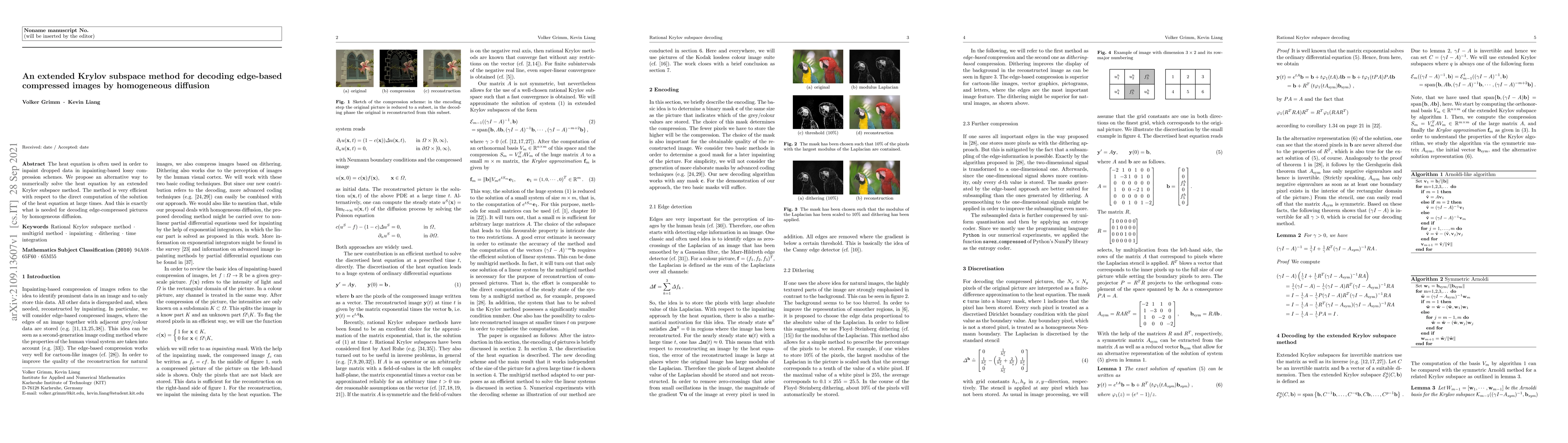 The heat equation is often used in order to inpaint dropped data in inpainting-based lossy compression schemes. We propose an alternative way to numerically solve the heat equation by an extended Krylov subspace method. The method is very efficient with respect to the direct computation of the solution of the heat equation at large times. And this is exactly what is needed for decoding edge-compressed pictures by homogeneous diffusion.
