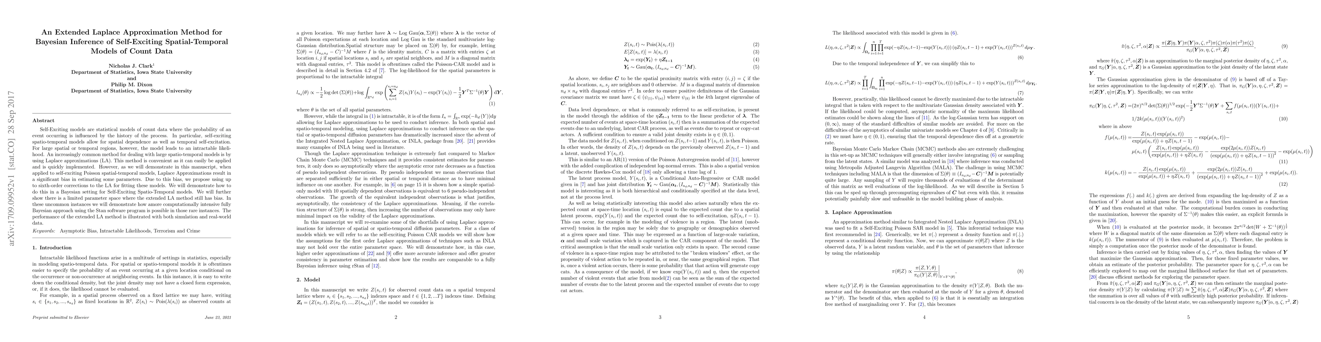 This paper proposes an extended Laplace Approximation method with up to sixth-order corrections to improve Bayesian inference for self-exciting spatio-temporal models of count data, addressing the bias issue in traditional LA. It also suggests a fully Bayesian approach using Stan for rare instances where extended LA still exhibits bias.