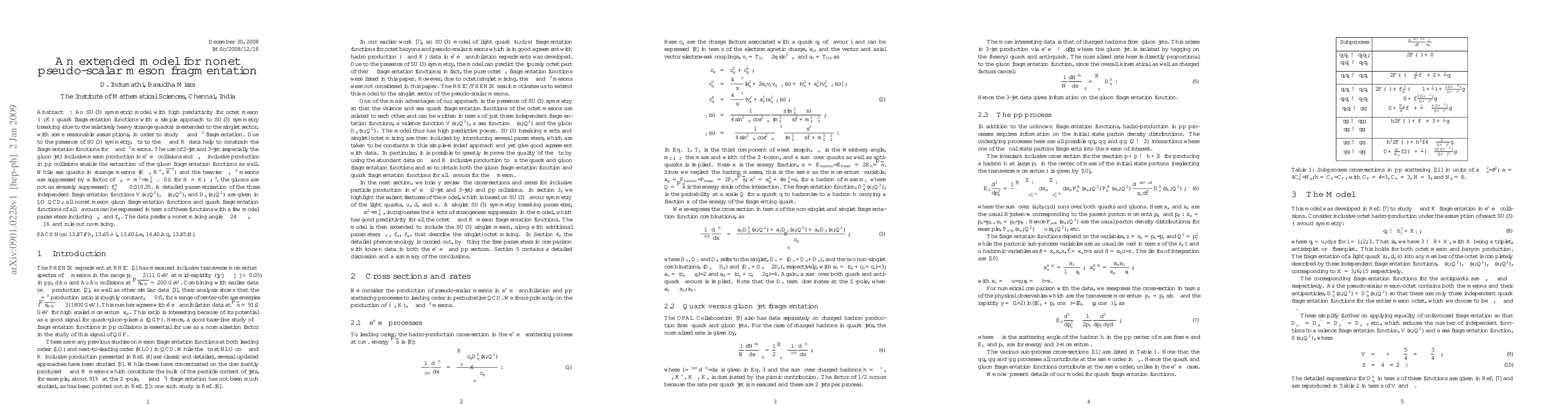 An SU(3) symmetric model with high predictivity for octet meson (\pi, K) quark fragmentation functions with a simple approach to SU(3) symmetry breaking (due to the relatively heavy strange quarks) is extended to the singlet sector, with some reasonable assumptions, in order to study \eta and \eta' fragmentation. Due to the presence of SU(3) symmetry, fits to the \pi and K data help to constrain the fragmentation functions for \eta and \eta' mesons. The use of 2-jet and 3-jet (especially the gluon jet) inclusive meson production in e^+e^- collisions and \pi, \eta inclusive production in p p collisions enable the extraction of the gluon fragmentation functions as well. While sea quarks in strange mesons (K^{+-},K^0,Kbar^0) and the heavier \eta, \eta' mesons are suppressed by a factor of lambda_H = m_\pi^2/m_H^2 < 0.1 for H=K,\eta,\eta', the gluons are not as severely suppressed: f_g^H=0.3--0.35. A detailed parametrisation of the three independent fragmentation functions V(x, Q2), \gamma(x, Q2), and D_g(x, Q2) are given in LO QCD; all nonet meson gluon fragmentation functions and quark fragmentation functions of all flavours can be expressed in terms of these functions with a few model parameters including \lambda_H and f_g. The data prefer a nonet mixing angle -24deg<=\theta_P<=-16deg and rule out no-mixing.