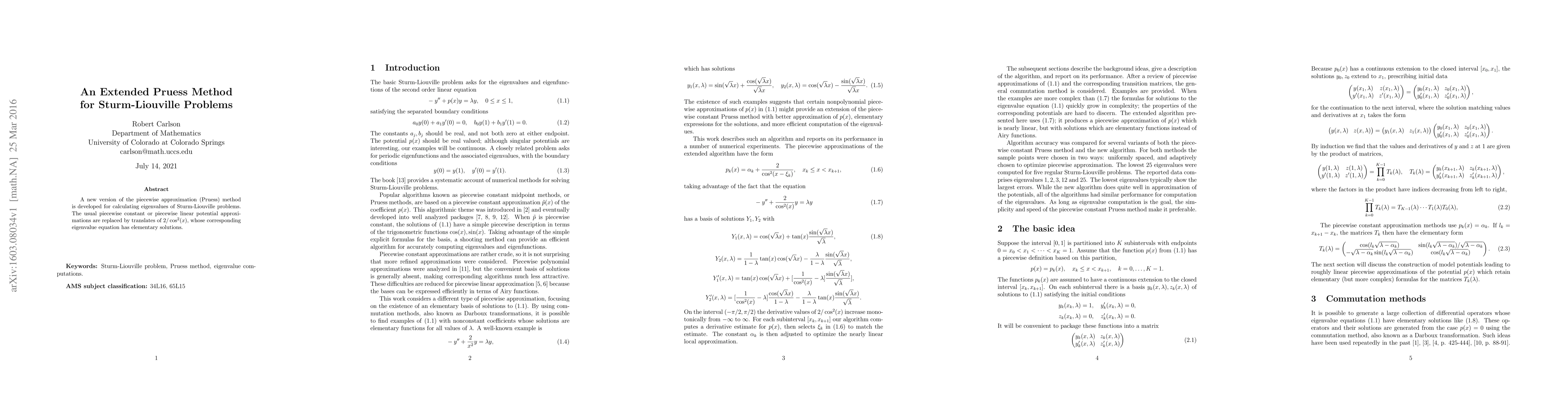 A new version of the piecewise approximation (Pruess) method is developed for calculating eigenvalues of Sturm-Liouville problems. The usual piecewise constant or piecewise linear potential approximations are replaced by translates of $2/cos^2(x)$, whose corresponding eigenvalue equation has elementary solutions.