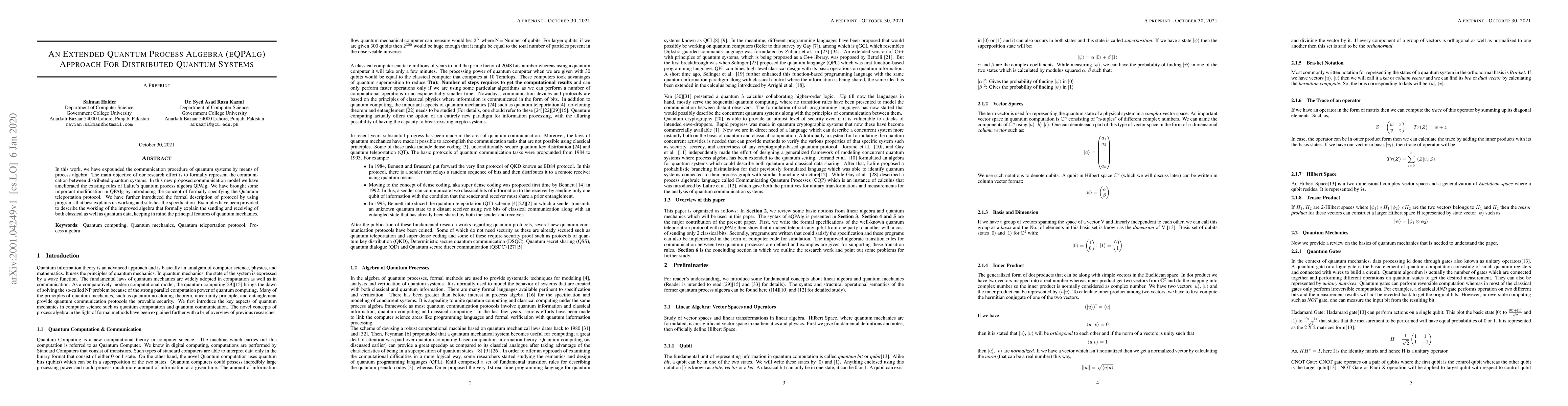 In this work, we have expounded the communication procedure of quantum systems by means of process algebra. The main objective of our research effort is to formally represent the communication between distributed quantum systems. In this new proposed communication model we have ameliorated the existing rules of Lalire's quantum process algebra QPAlg. We have brought some important modification in QPAlg by introducing the concept of formally specifying the Quantum teleportation protocol. We have further introduced the formal description of protocol by using programs that best explains its working and satisfies the specification. Examples have been provided to describe the working of the improved algebra that formally explain the sending and receiving of both classical as well as quantum data, keeping in mind the principal features of quantum mechanics.