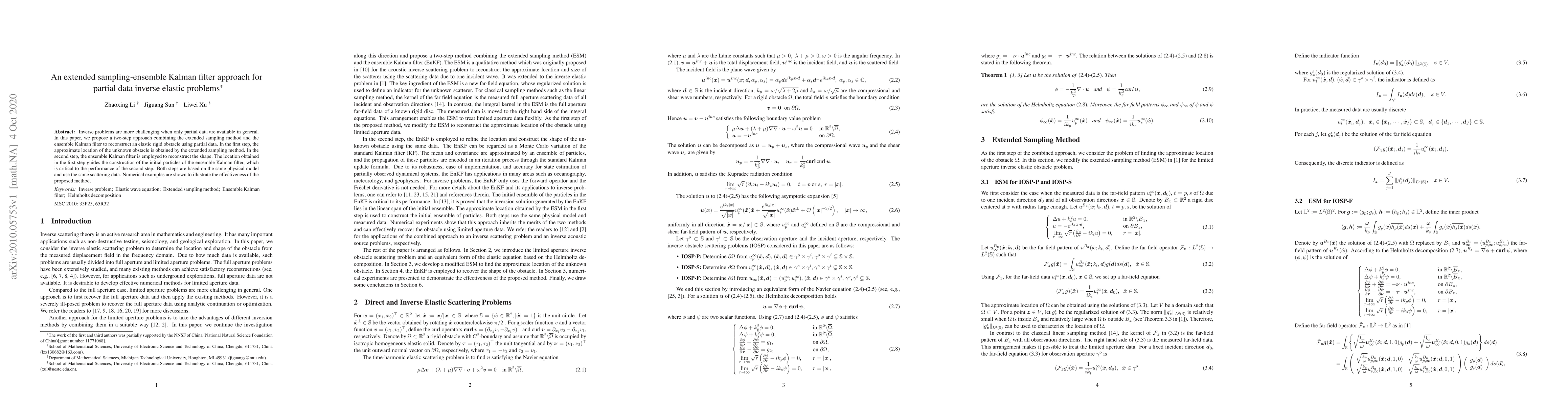 Inverse problems are more challenging when only partial data are available in general. In this paper, we propose a two-step approach combining the extended sampling method and the ensemble Kalman filter to reconstruct an elastic rigid obstacle using partial data. In the first step, the approximate location of the unknown obstacle is obtained by the extended sampling method. In the second step, the ensemble Kalman filter is employed to reconstruct the shape. The location obtained in the first step guides the construction of the initial particles of the ensemble Kalman filter, which is critical to the performance of the second step. Both steps are based on the same physical model and use the same scattering data. Numerical examples are shown to illustrate the effectiveness of the proposed method.
