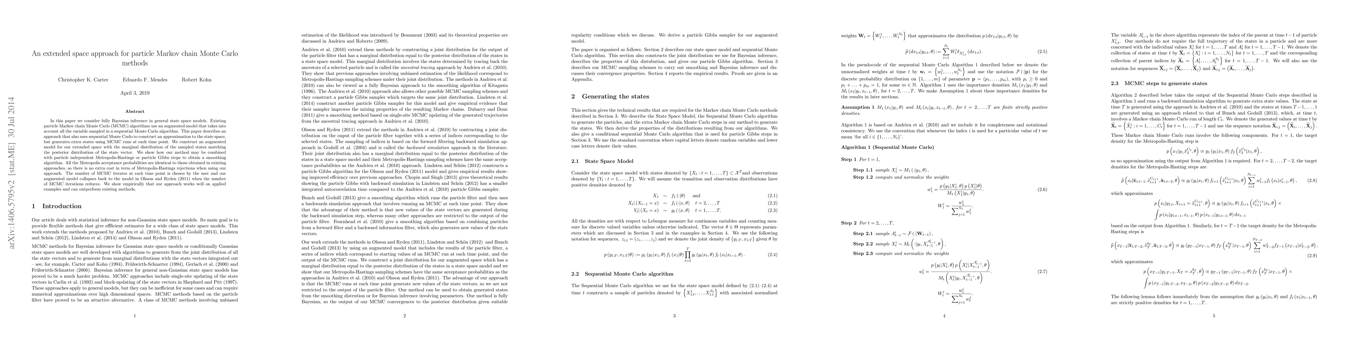 This paper proposes an extended space approach for particle Markov chain Monte Carlo methods to improve fully Bayesian inference in state space models. The method generates extra states using MCMC runs at each time point and constructs an augmented model that matches the posterior distribution, potentially outperforming existing methods with no additional computational cost.