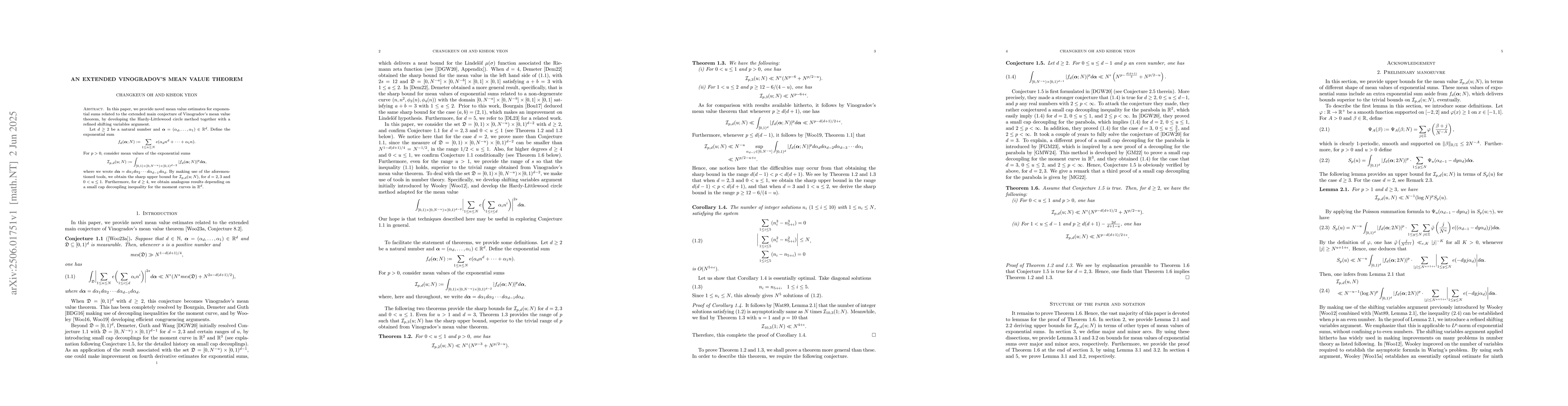 The paper extends Vinogradov's mean value theorem by developing the Hardy-Littlewood circle method and refined shifting variables argument to obtain sharp upper bounds for mean values of exponential sums.