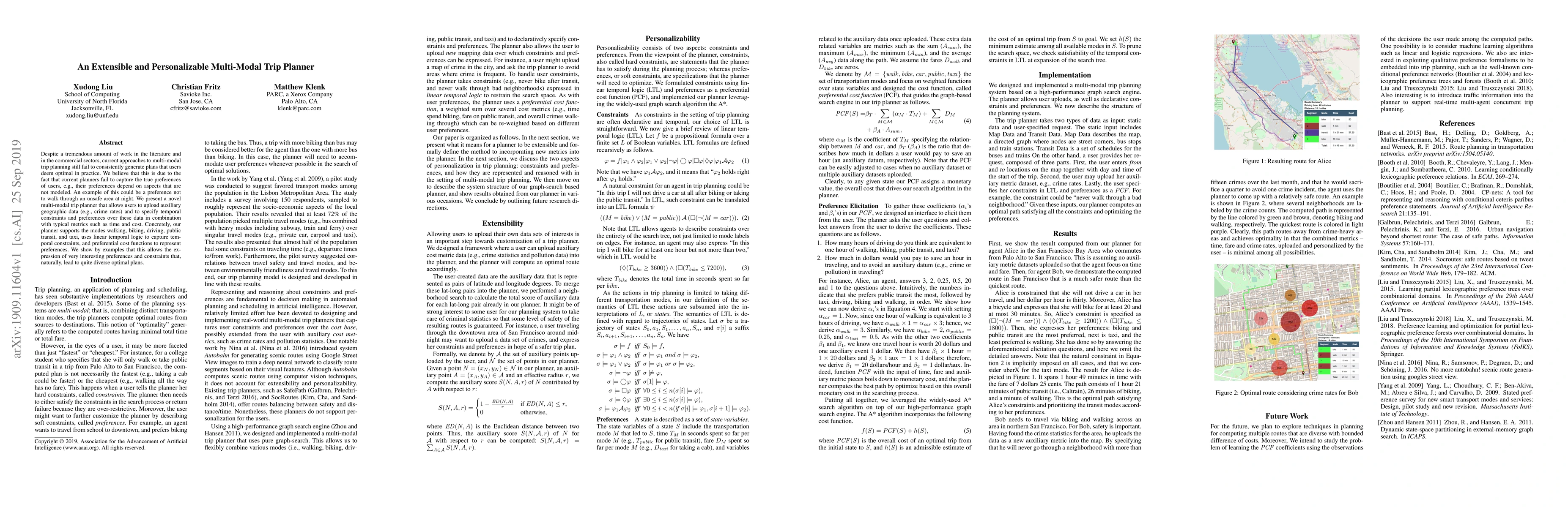 This paper introduces a customizable multi-modal trip planner that allows users to incorporate personal preferences and external data, such as crime rates, to generate optimal travel plans that consider factors like time, cost, and safety. The planner uses linear temporal logic and preferential cost functions to accommodate diverse user constraints and preferences.