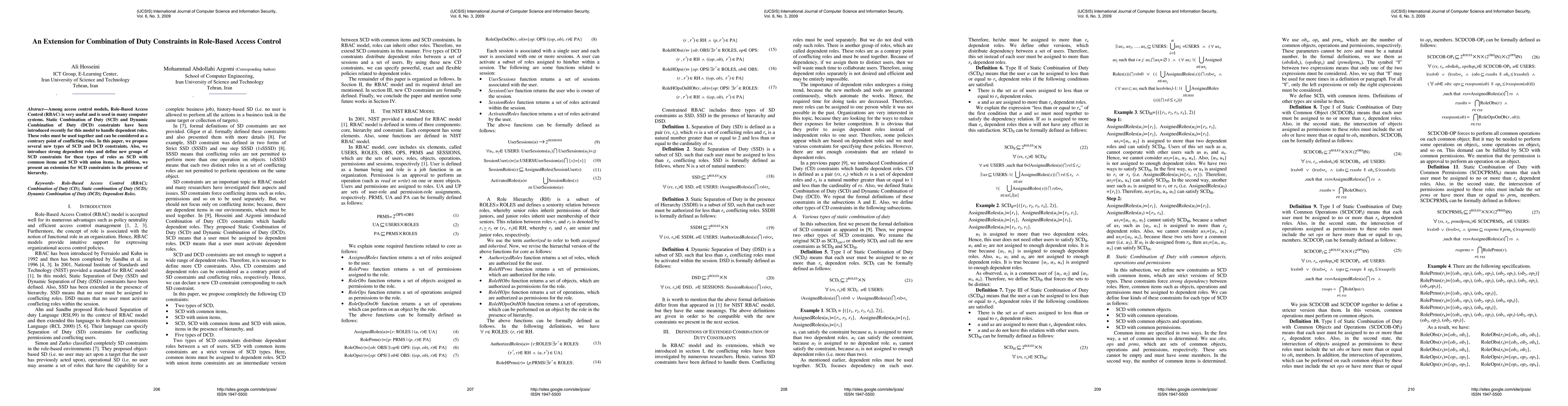 Among access control models, Role Based Access Control (RBAC) is very useful and is used in many computer systems. Static Combination of Duty (SCD) and Dynamic Combination of Duty (DCD) constraints have been introduced recently for this model to handle dependent roles. These roles must be used together and can be considered as a contrary point of conflicting roles. In this paper, we propose several new types of SCD and DCD constraints. Also, we introduce strong dependent roles and define new groups of SCD constraints for these types of roles as SCD with common items and SCD with union items. In addition, we present an extension for SCD constraints in the presence of hierarchy.