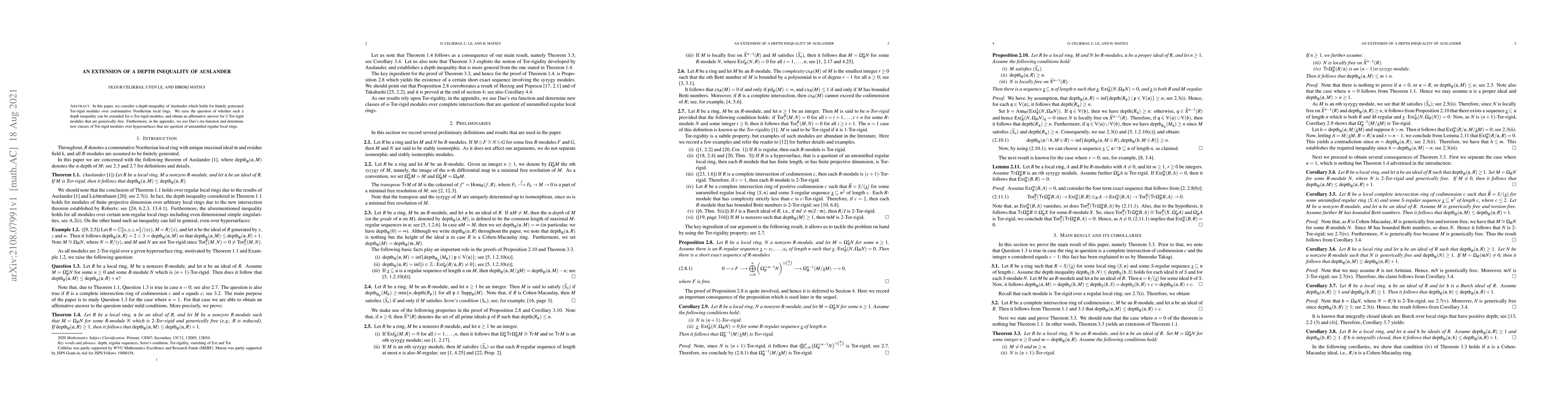 In this paper, we consider a depth inequality of Auslander which holds for finitely generated Tor-rigid modules over commutative Noetherian local rings. We raise the question of whether such a depth inequality can be extended for $n$-Tor-rigid modules, and obtain an affirmative answer for 2-Tor-rigid modules that are generically free. Furthermore, in the appendix, we use Dao's eta function and determine new classes of Tor-rigid modules over hypersurfaces that are quotient of unramified regular local rings.