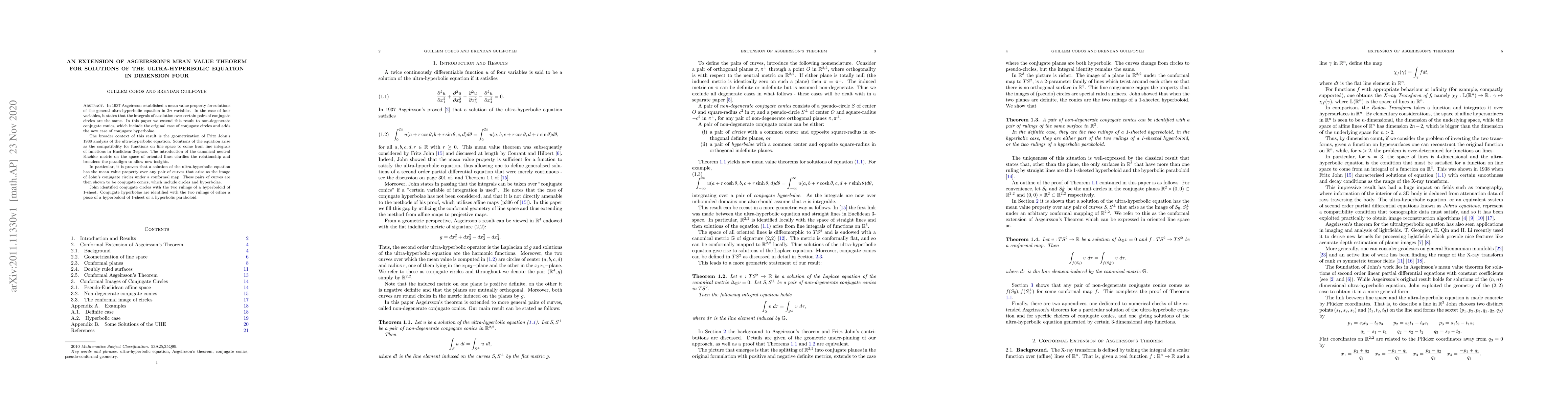 Researchers extend Asgeirsson's Mean Value Theorem to non-degenerate conjugate conics in four dimensions, proving a solution of the ultra-hyperbolic equation has the mean value property over any pair of curves resulting from a conformal map of John's conjugate circles.