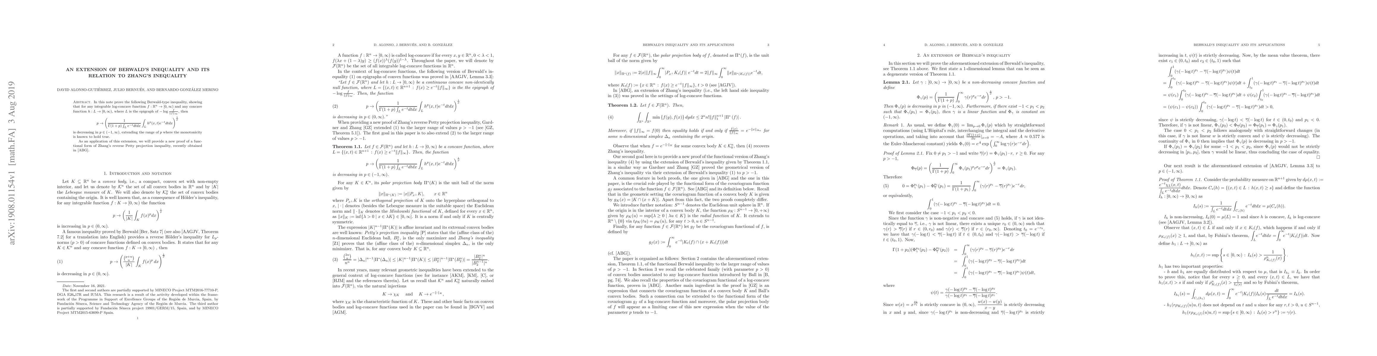 This paper extends Berwald's inequality to show that a specific expression decreases for increasing values of p in (-1, ∞), with applications in functional inequalities and reverse Petty projection.