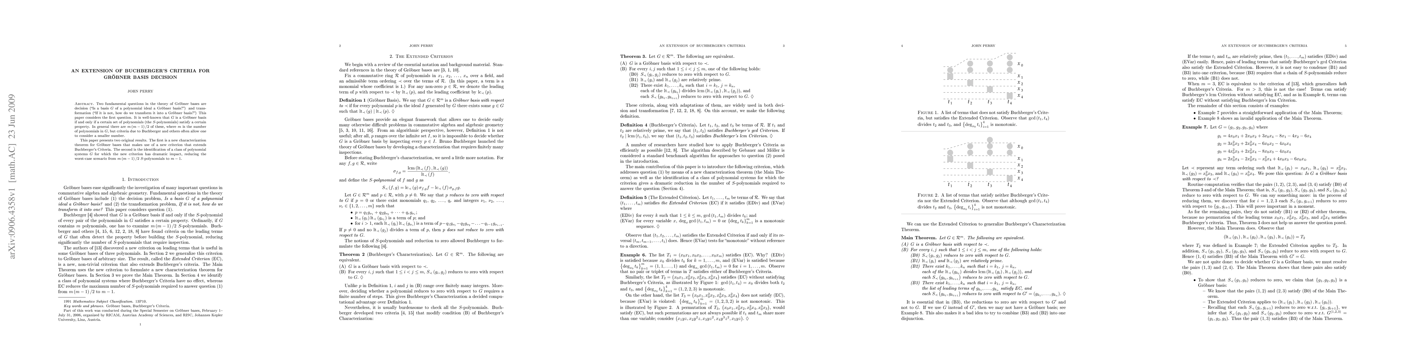 This paper extends Buchberger's criteria for determining Groebner basis decision by presenting a new characterization theorem and identifying a class of polynomial systems where the number of S-polynomials to check is significantly reduced from m(m-1)/2 to m-1.