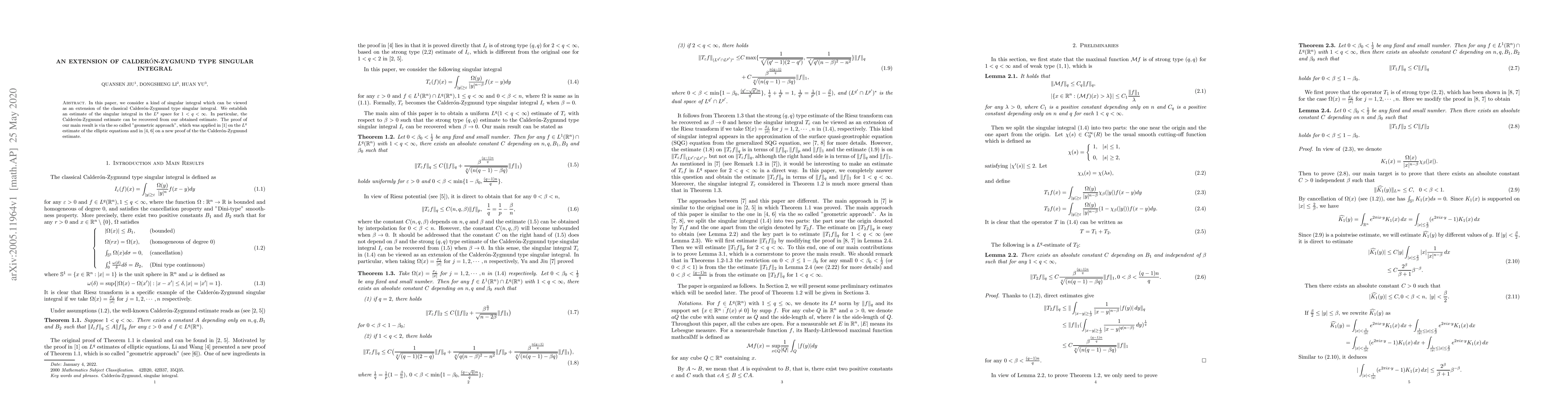 This paper extends the classical Calder$\acute{\rm o}$n-Zygmund type singular integral and establishes an $L^q$ space estimate for $1<q<\infty$. The Calder$\acute{\rm o}$n-Zygmund estimate is recovered from the new result, which is proven using a geometric approach similar to methods used in elliptic equations and the Calder$\acute{\rm o}$n-Zygmund estimate.