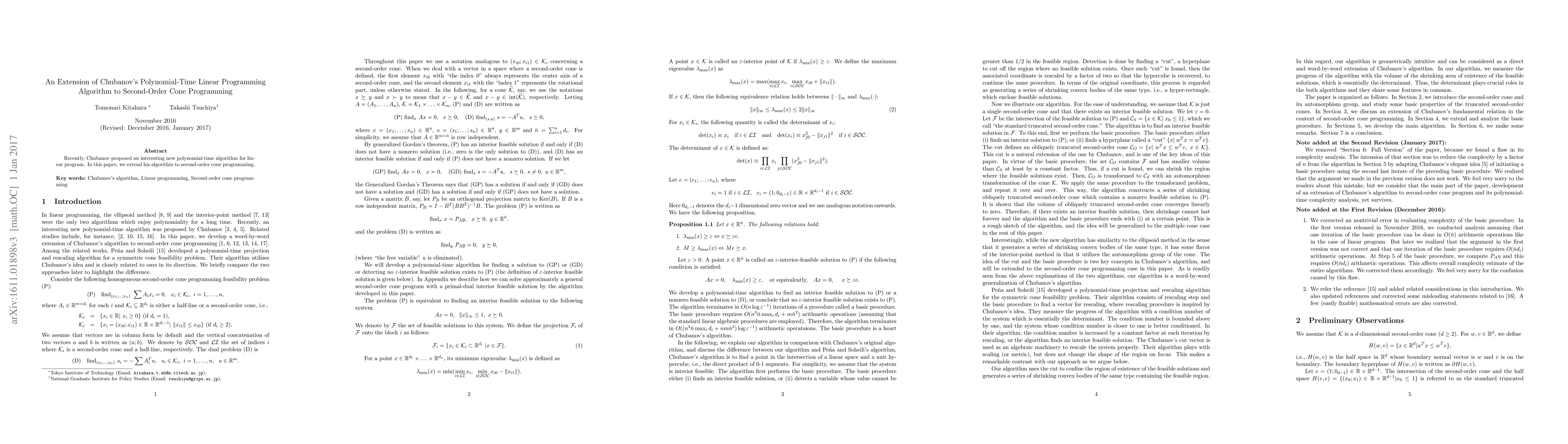 Recently, Chubanov proposed an interesting new polynomial-time algorithm for linear program. In this paper, we extend his algorithm to second-order cone programming.