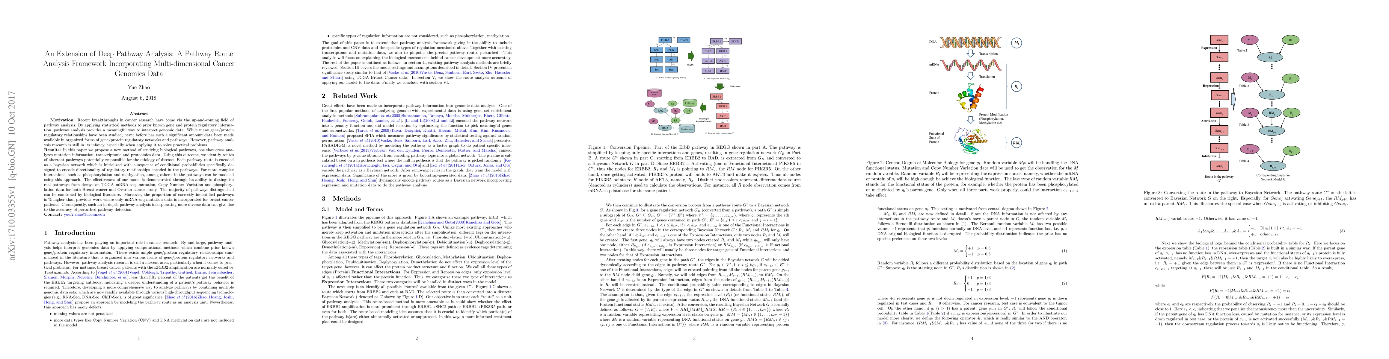 This paper introduces a novel pathway route analysis framework that integrates multi-dimensional cancer genomics data, including mutation, transcriptome, and proteomics information, to identify aberrant pathways in cancer. The method encodes pathways as Bayesian networks, demonstrating improved accuracy in distinguishing real pathways over previous methods, as validated through Breast and Ovarian cancer studies.
