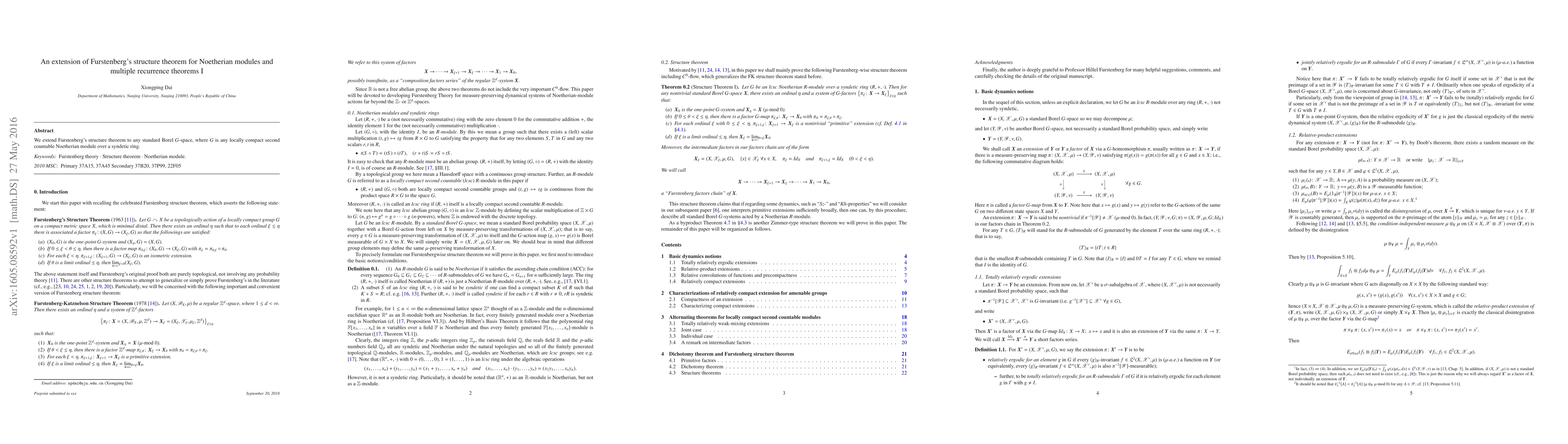 We extend Furstenberg's structure theorem to any standard Borel $G$-space, where $G$ is any locally compact second countable Noetherian module over a syndetic ring.