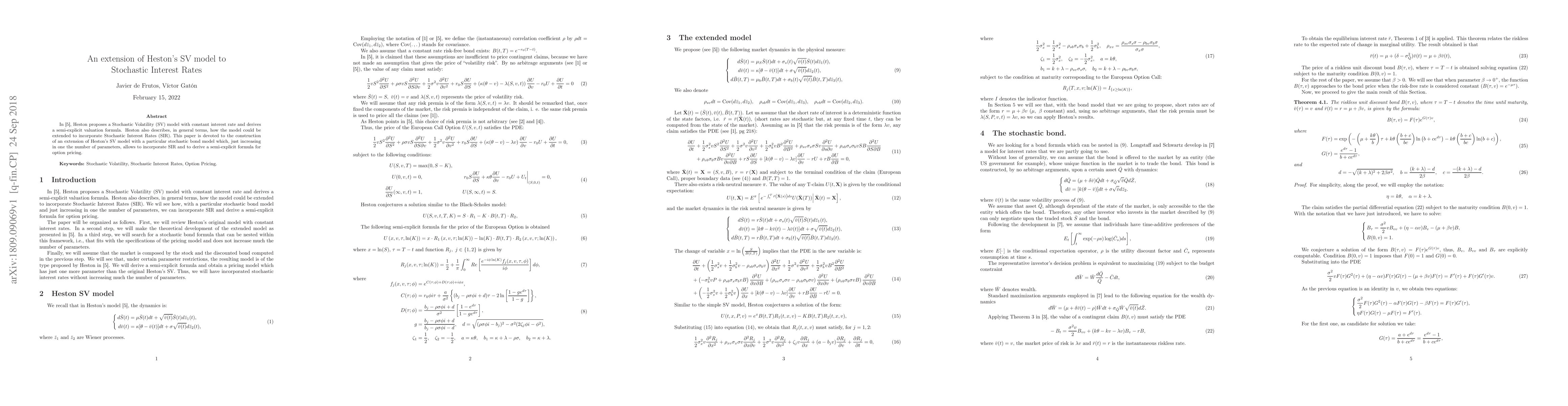 This paper extends Heston's Stochastic Volatility model to include Stochastic Interest Rates using a specific stochastic bond model, thereby deriving a semi-explicit formula for option pricing. The extension increases the model's parameters but maintains the semi-explicit valuation formula.