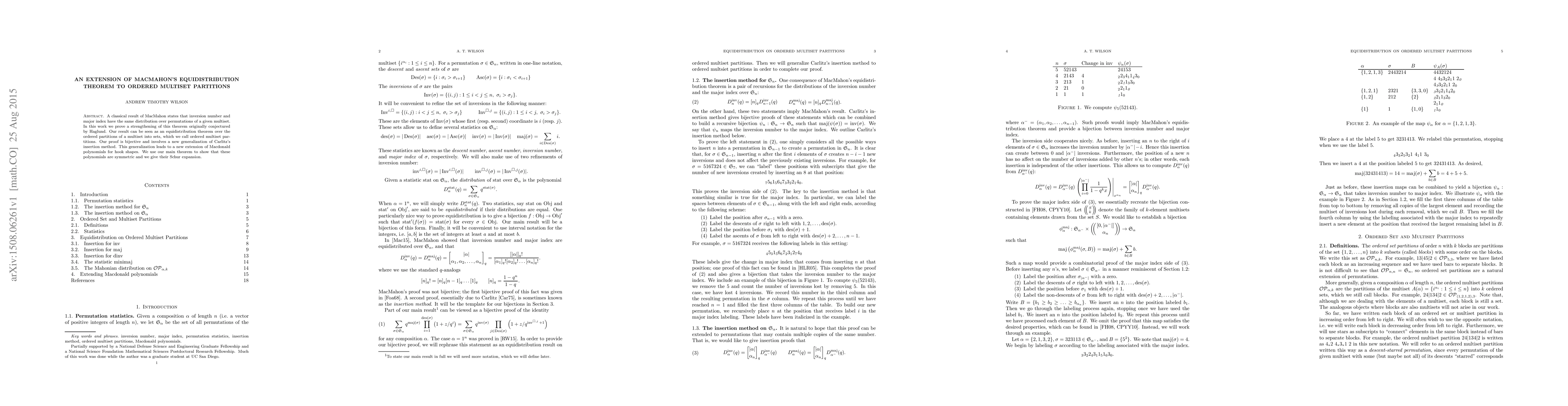A classical result of MacMahon states that inversion number and major index have the same distribution over permutations of a given multiset. In this work we prove a strengthening of this theorem originally conjectured by Haglund. Our result can be seen as an equidistribution theorem over the ordered partitions of a multiset into sets, which we call ordered multiset partitions. Our proof is bijective and involves a new generalization of Carlitz's insertion method. This generalization leads to a new extension of Macdonald polynomials for hook shapes. We use our main theorem to show that these polynomials are symmetric and we give their Schur expansion.