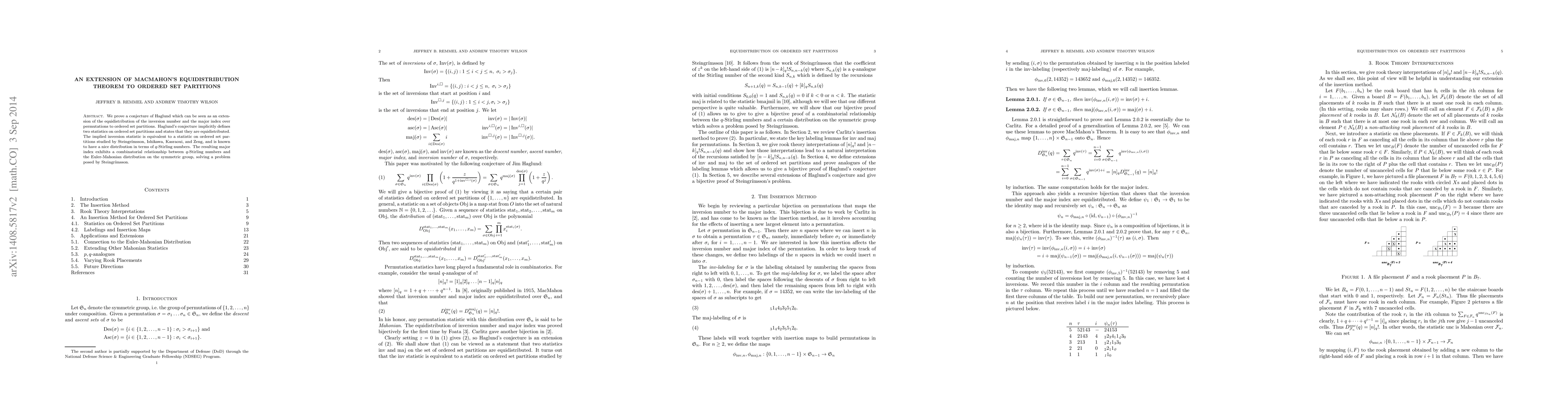 This paper extends MacMahon's Equidistribution Theorem to ordered set partitions by proving Haglund's conjecture that two defined statistics on these partitions are equidistributed, linking the inversion statistic to $q$-Stirling numbers and solving a problem regarding the Euler-Mahonian distribution on the symmetric group.