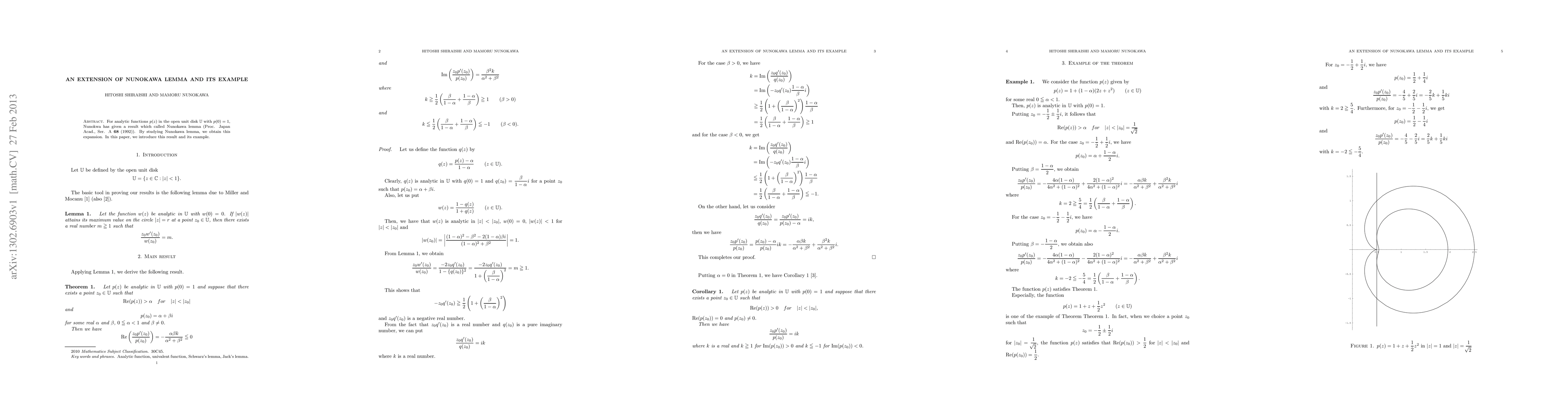 The result builds upon existing work on Nunokawa lemma, offering insights into the properties of analytic functions within the specified domain.
