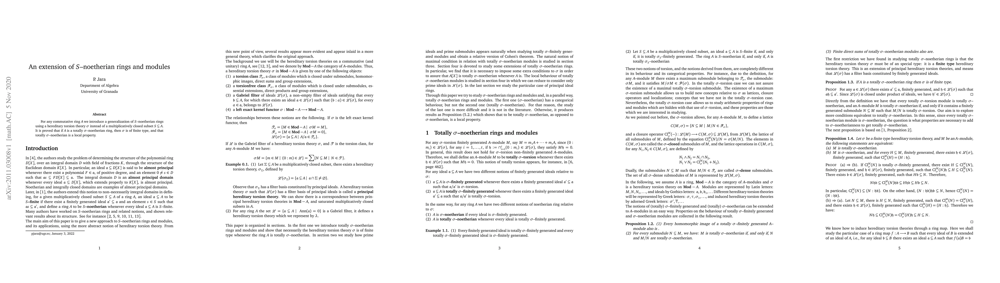 This paper generalizes the concept of $S$-noetherian rings by using hereditary torsion theory $\sigma$ instead of a multiplicatively closed subset $S$. It proves that a totally $\sigma$-noetherian ring has a $\sigma$ of finite type and that total $\sigma$-noetherian property is local.