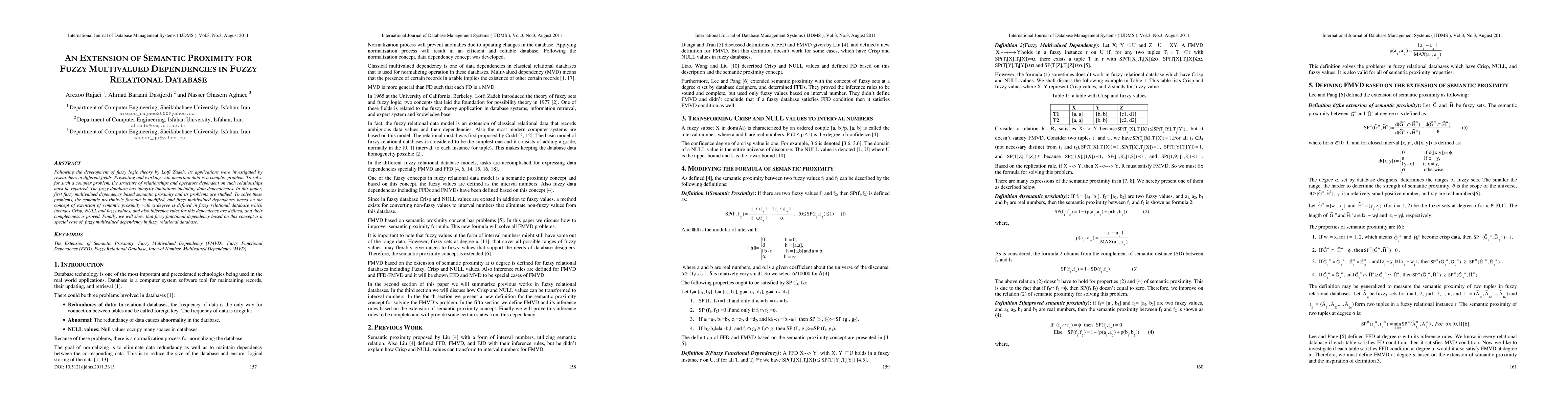 This paper modifies the formula for semantic proximity to address issues in fuzzy multivalued dependencies within fuzzy relational databases. It introduces an extended semantic proximity concept with an alpha degree, defines inference rules, and proves their completeness, showing that fuzzy functional dependency is a special case of this extended dependency.