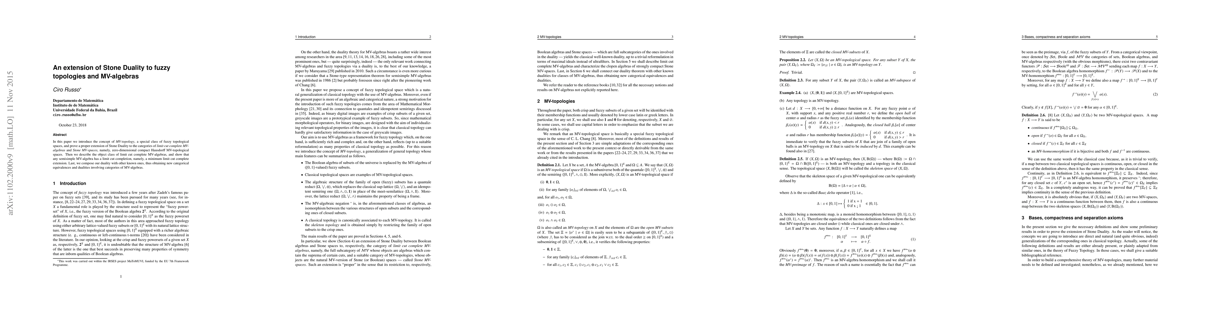 This paper extends Stone duality to fuzzy topologies, introducing MV-topology and proving a duality between limit cut complete MV-algebras and zero-dimensional compact Hausdorff MV-topological spaces. It also shows that semisimple MV-algebras have a limit cut completion and integrates this new duality with existing categorical equivalences.