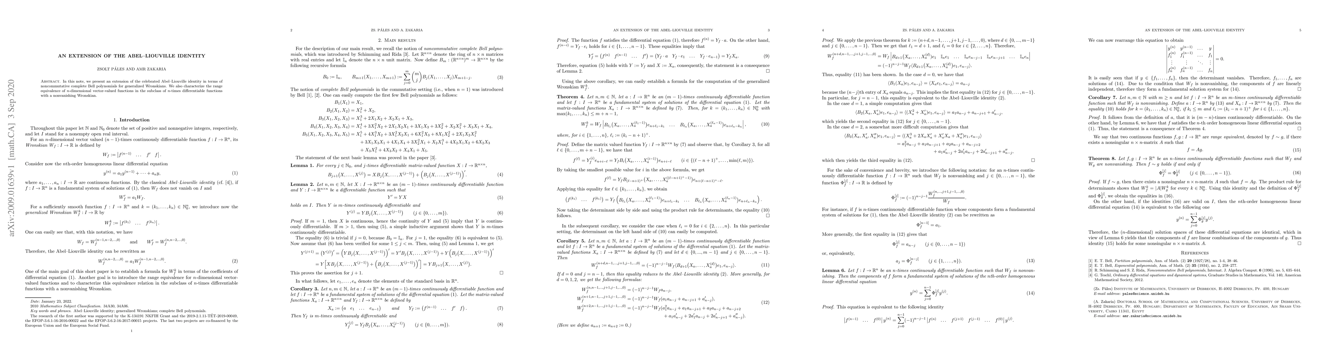 Summary: This paper extends the Abel-Liouville identity using noncommutative complete Bell polynomials for generalized Wronskians and characterizes the range equivalence of $n$-dimensional vector-valued functions within the class of $n$-times differentiable functions with a nonvanishing Wronskian.