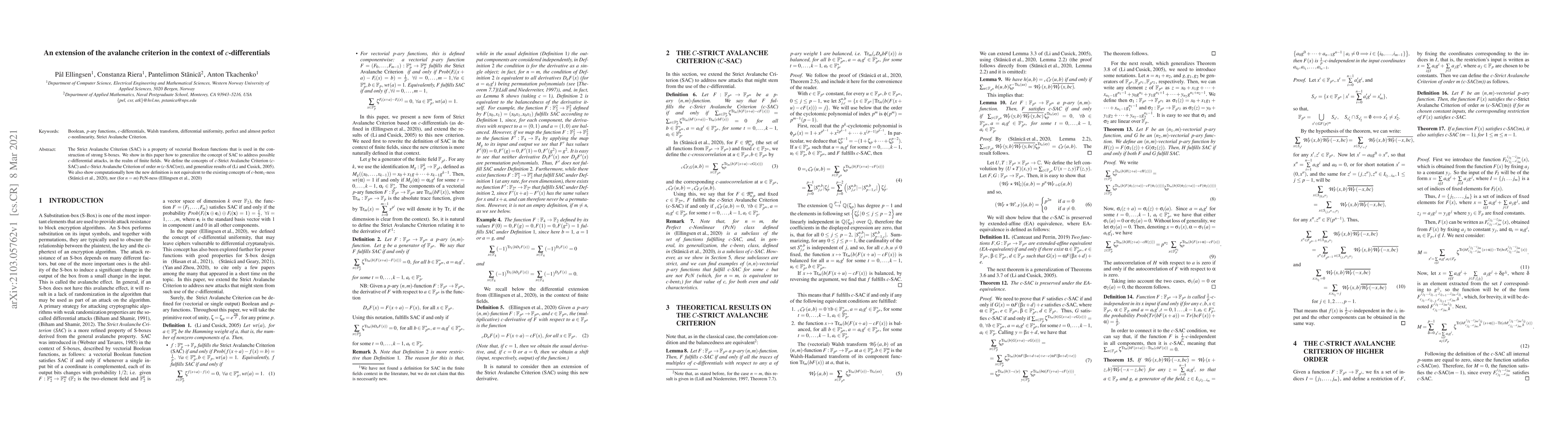 This paper extends the Strict Avalanche Criterion (SAC) to c-differentials in finite fields, defining c-Strict Avalanche Criterion (c-SAC) and c-SAC of order m (c-SAC(m)). It demonstrates that the new definitions are distinct from existing concepts of c-bent1-ness and PcN-ness.