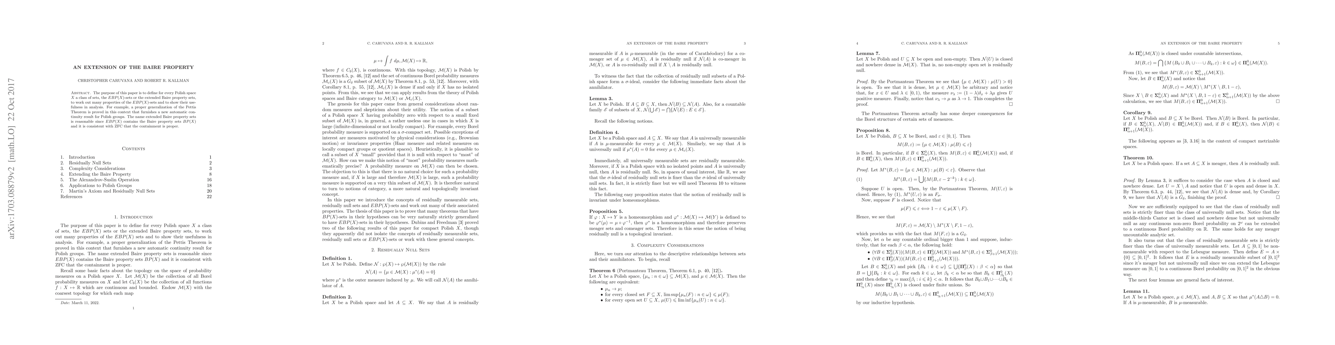 This paper introduces $EBP(X)$-sets, an extension of the Baire property for Polish spaces, and explores their properties and applications in analysis, including a generalized Pettis Theorem for Polish groups. It demonstrates that $EBP(X)$ properly extends $BP(X)$ within ZFC.
