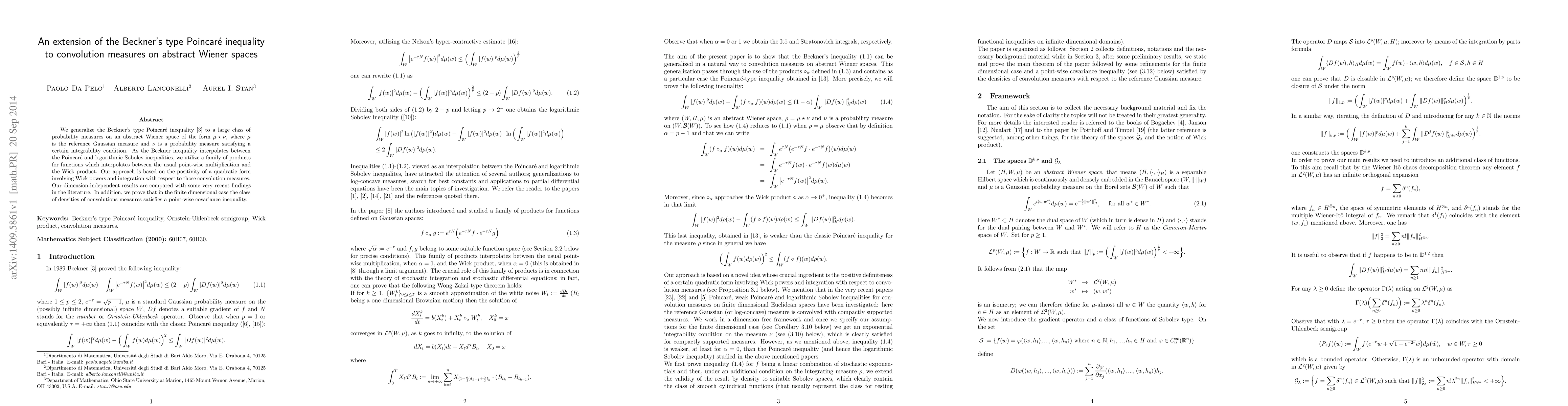 This paper extends Beckner's type Poincaré inequality to convolution measures on abstract Wiener spaces, utilizing a family of interpolation products between point-wise and Wick products. The results are dimension-independent and compared with recent findings, with a focus on covariance inequalities in finite dimensions.