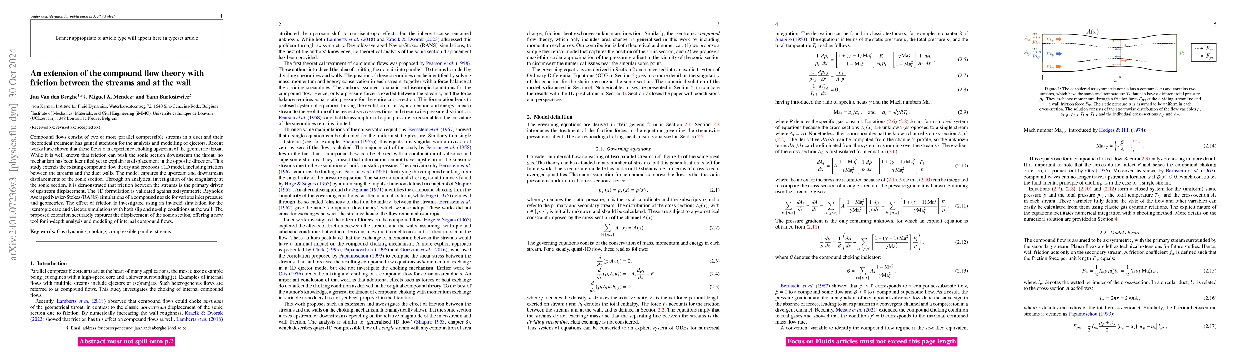 Compound flows consist of two or more parallel compressible streams inside a duct. Its theoretical treatment has recently been applied to model ejectors, but also to post-process and to interpret CFD results. More precisely, it has been observed that compound flows can choke upstream of the geometrical throat. While it is widely known that friction can push the sonic section downstream, no mechanism has been identified to explain the movement in the opposite direction. In this work, we extend the existing compound flow theory with shear and friction. The resulting model captures the up- and downstream movement of the sonic section. We show analytically that shear between the streams is the driving force behind the upstream movement by analysing the singularity of the governing equations in the sonic section. Additionally, we provide a quasi-third order approximation of the governing equations in the vicinity of the sonic section to alleviate potential numerical issues. Finally, we compare the predictions of the model with post-processed CFD results of a compound nozzle. We study the individual effects of shear and friction through an inviscid simulation for the isentropic case and a viscid simulation with a slip or no-slip condition at the wall to include shear with or without friction. The proposed extension offers new possibilities in modelling and analysis of compound flows.