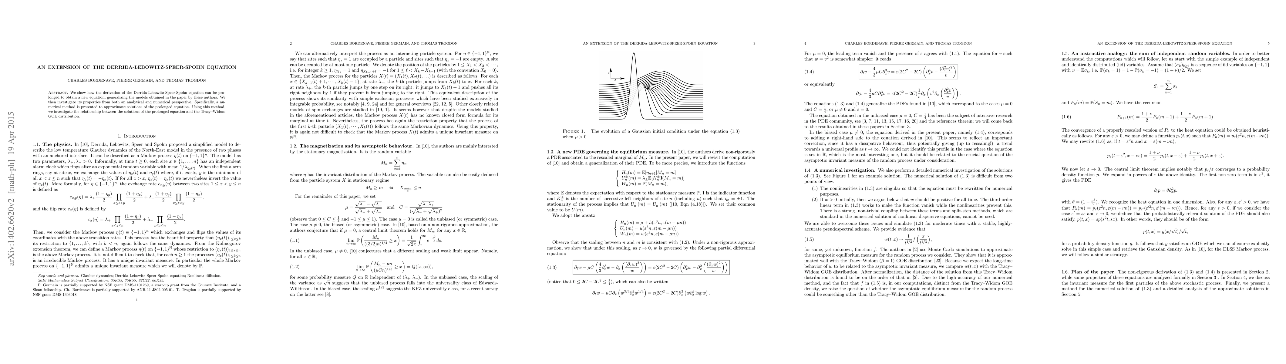Derrida, Lebowitz, Speer and Spohn have proposed a simplified model to describe the low temperature Glauber dynamics of an anchored Toom interface. We show how the derivation of the Derrida-Lebowitz-Speer-Spohn equation can be prolonged to obtain a new equation, generalizing the models obtained in the paper by these authors. We then investigate its properties from both an analytical and numerical perspective. Specifically, a numerical method is presented to approximate solutions of the prolonged equation. Using this method, we investigate the relationship between the solutions of the prolonged equation and the Tracy--Widom GOE distribution.