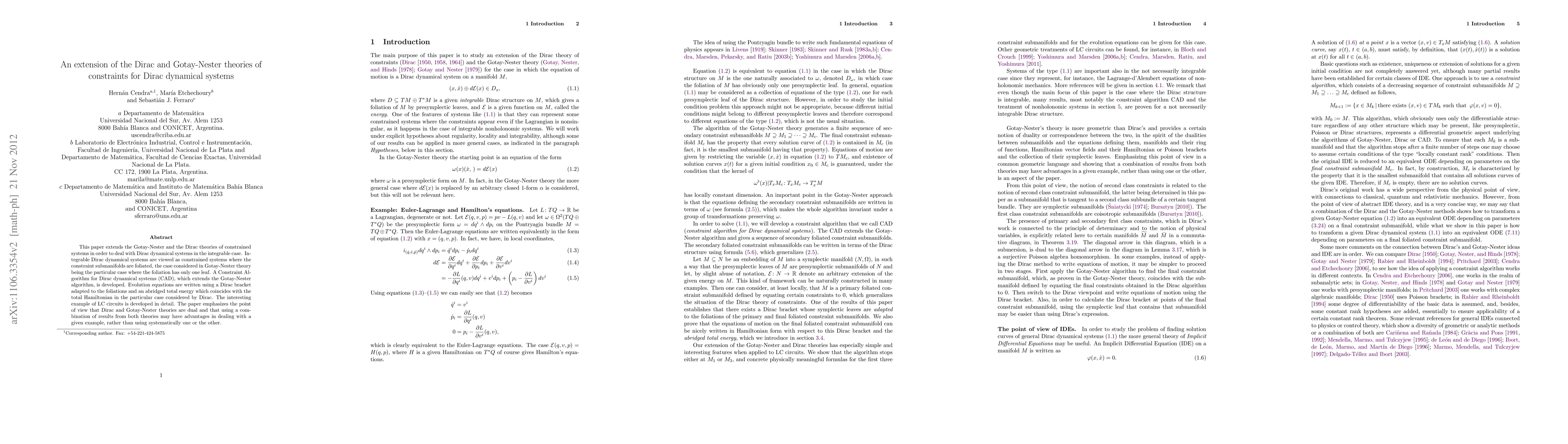 This paper extends the Gotay-Nester and Dirac theories to analyze integrable Dirac dynamical systems, developing a Constraint Algorithm for Dirac dynamical systems. It highlights the dual nature of these theories and suggests their combined use can be advantageous.