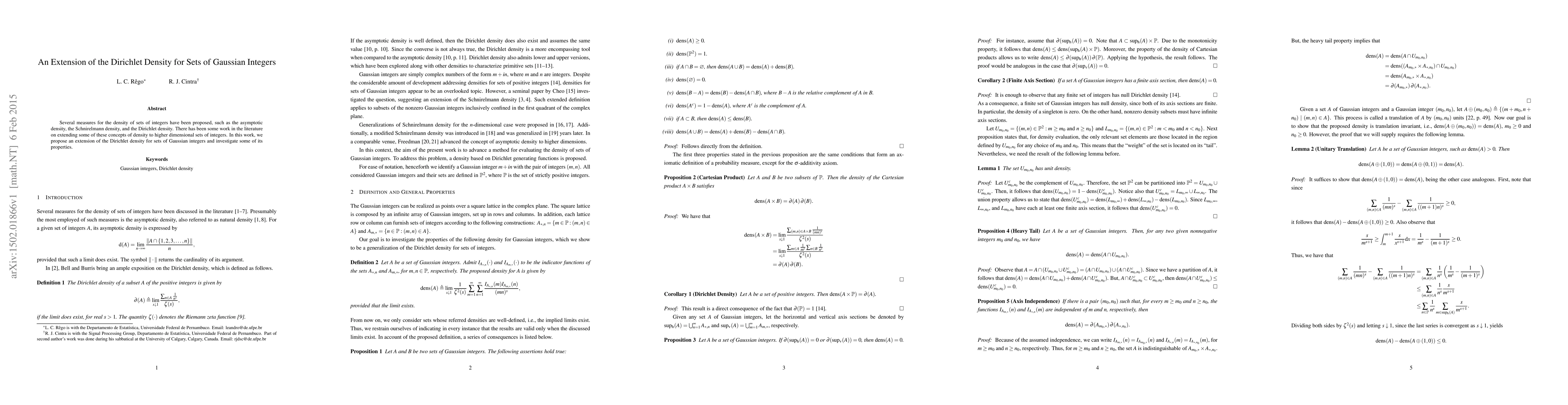 This paper proposes an extension of the Dirichlet density to sets of Gaussian integers and explores its properties, building on existing density measures for integer sets. The study aims to adapt these concepts to the complex plane of Gaussian integers.