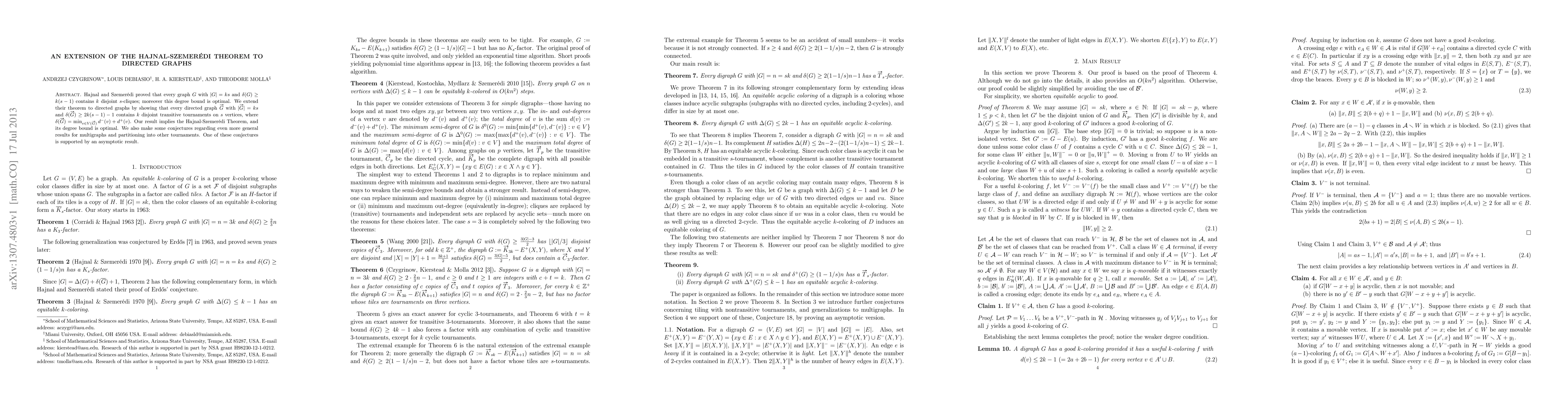 This paper extends the Hajnal-Szemeredi theorem from undirected graphs to directed graphs, proving that every directed graph with sufficient minimum total degree contains k vertex disjoint transitive tournaments of size s. The degree bound is shown to be optimal.