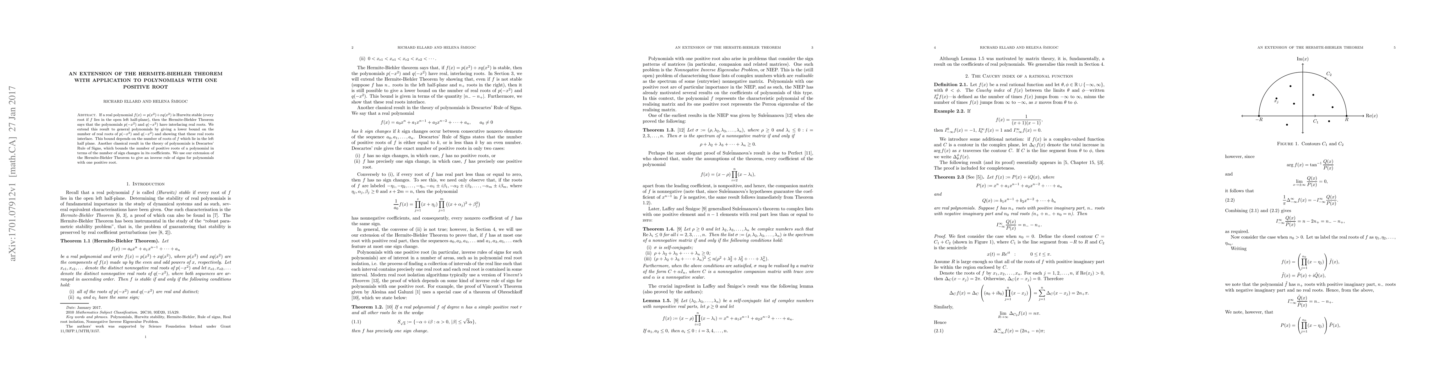 If a real polynomial $f(x)=p(x^2)+xq(x^2)$ is Hurwitz stable (every root if $f$ lies in the open left half-plane), then the Hermite-Biehler Theorem says that the polynomials $p(-x^2)$ and $q(-x^2)$ have interlacing real roots. We extend this result to general polynomials by giving a lower bound on the number of real roots of $p(-x^2)$ and $q(-x^2)$ and showing that these real roots interlace. This bound depends on the number of roots of $f$ which lie in the left half plane. Another classical result in the theory of polynomials is Descartes' Rule of Signs, which bounds the number of positive roots of a polynomial in terms of the number of sign changes in its coefficients. We use our extension of the Hermite-Biehler Theorem to give an inverse rule of signs for polynomials with one positive root.