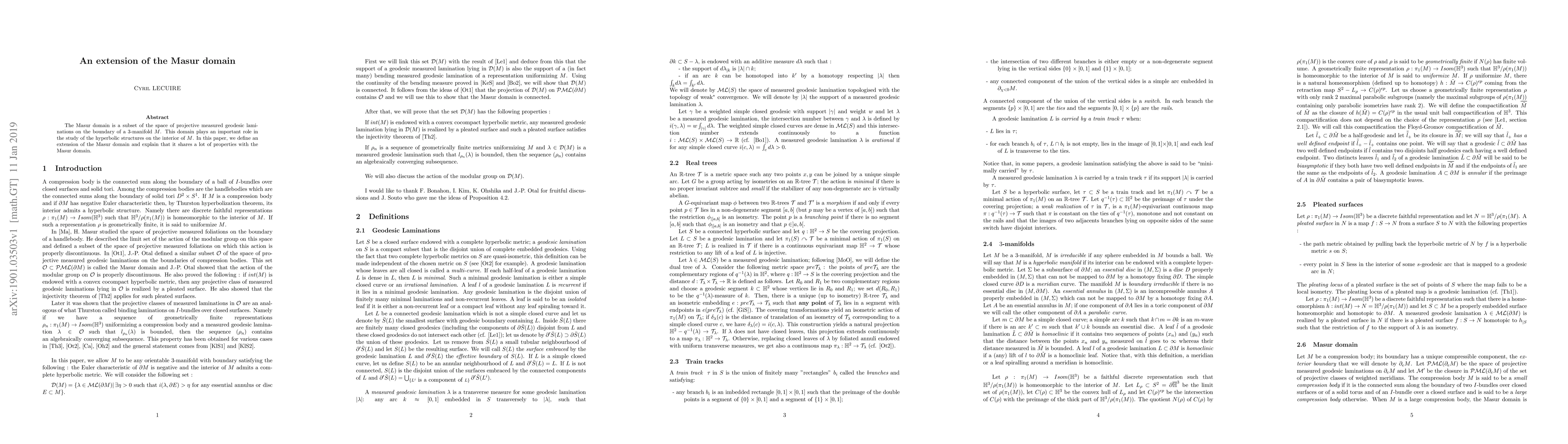 The Masur domain is a subset of the space of projective measured geodesic laminations on the boundary of a 3-manifold M. This domain plays an important role in the study of the hyperbolic structures on the interior of M. In this paper, we define an extension of the Masur domain and explain that it shares a lot of properties with the Masur domain.