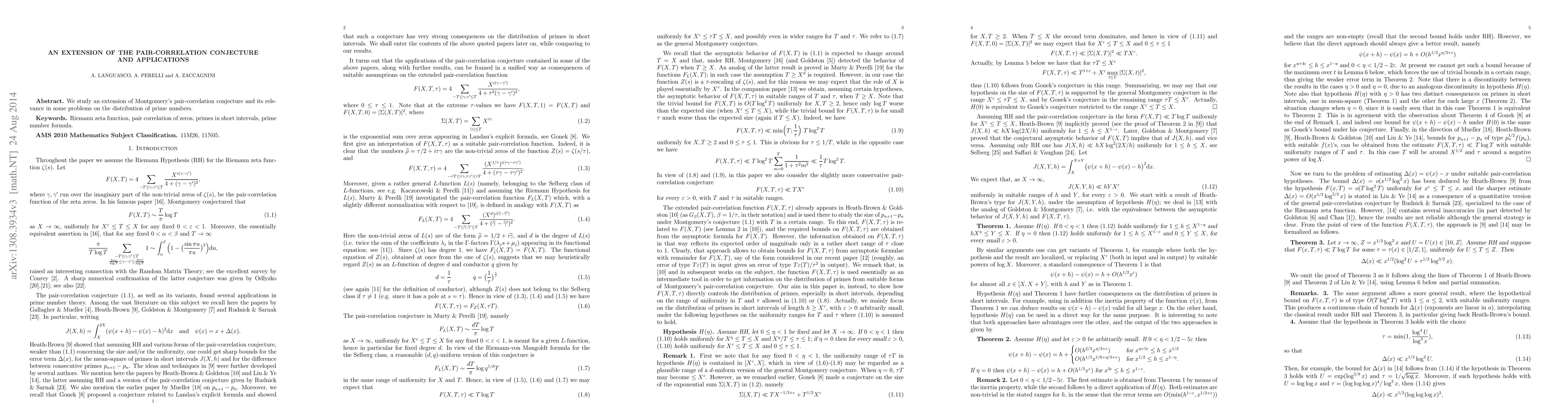 Summary: This paper extends Montgomery's pair-correlation conjecture and explores its implications for understanding the distribution of prime numbers, providing new insights into this area of number theory.