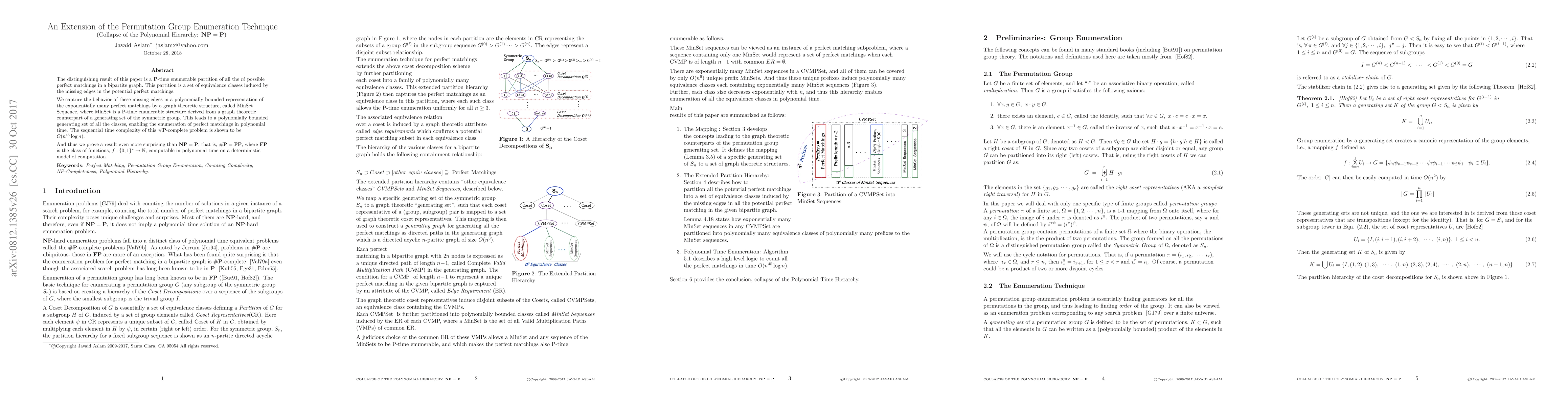 The distinguishing result of this paper is a $\mathbf{P}$-time enumerable partition of all the potential perfect matchings in a bipartite graph. This partition is a set of equivalence classes induced by the missing edges in the potential perfect matchings. We capture the behavior of these missing edges in a polynomially bounded representation of the exponentially many perfect matchings by a graph theoretic structure, called MinSet Sequence, where MinSet is a P-time enumerable structure derived from a graph theoretic counterpart of a generating set of the symmetric group. This leads to a polynomially bounded generating set of all the classes, enabling the enumeration of perfect matchings in polynomial time. The sequential time complexity of this $\mathbf{\#P}$-complete problem is shown to be $O(n^{45}\log n)$. And thus we prove a result even more surprising than $\mathbf{NP = P}$, that is, $\mathbf{\#P}=\mathbf{FP}$, where $\mathbf{FP}$ is the class of functions, $f: \{0, 1\}^* \rightarrow \mathbb{N} $, computable in polynomial time on a deterministic model of computation.