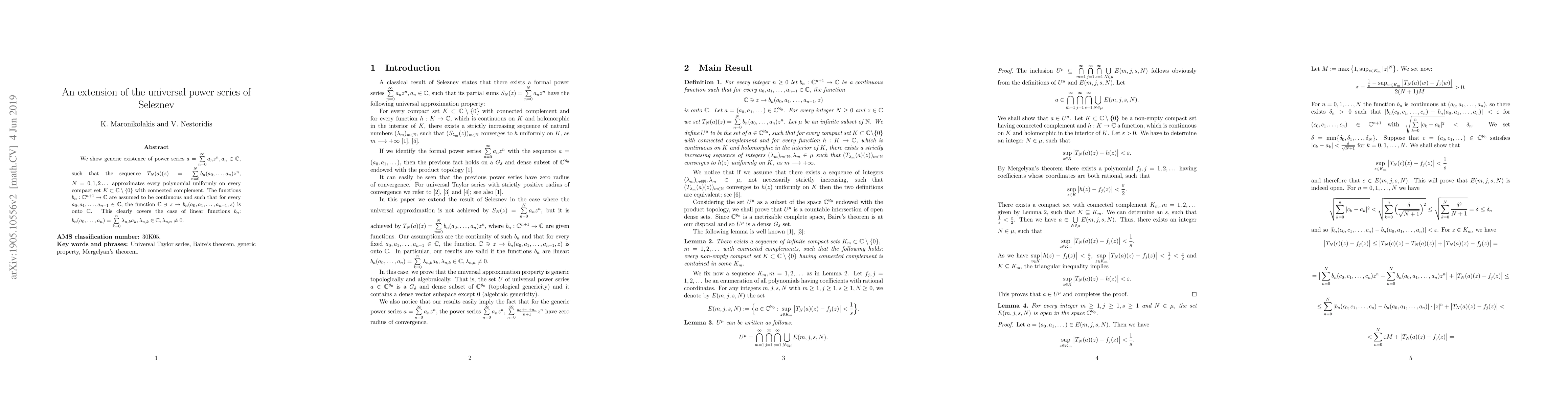 We show generic existence of power series a with complex coefficients a_n, such that the sequence of partial sums of a new power series where its coefficients b_n are functions of a_0, a_1, ..., a_n approximate every polynomial uniformly on every compact set K not containing the origin and with connected complement. The functions b_n are assumed to be continuous and such that for every complex numbers a_0, a_1, ... , a_{n - 1}, c there exists a complex number a_n such that b_n(a_0, a_1,..., a_{n-1}, a_n) = c. This clearly covers the case of linear functions b_n.