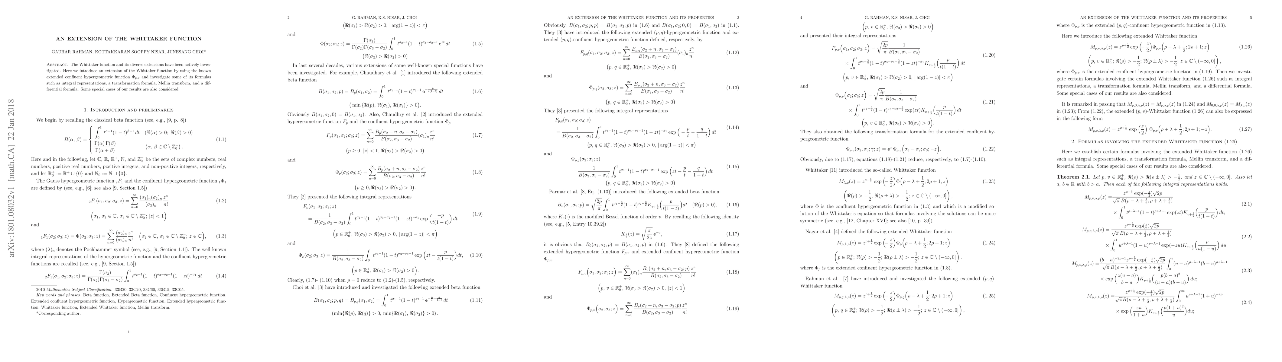 The Whittaker function and its diverse extensions have been actively investigated. Here we introduce an extension of the Whittaker function by using the known extended confluent hypergeometric function $\Phi_{p,v}$ and investigate some of its formulas such as integral representations, a transformation formula, Mellin transform, and a differential formula. Some special cases of our results are also considered.