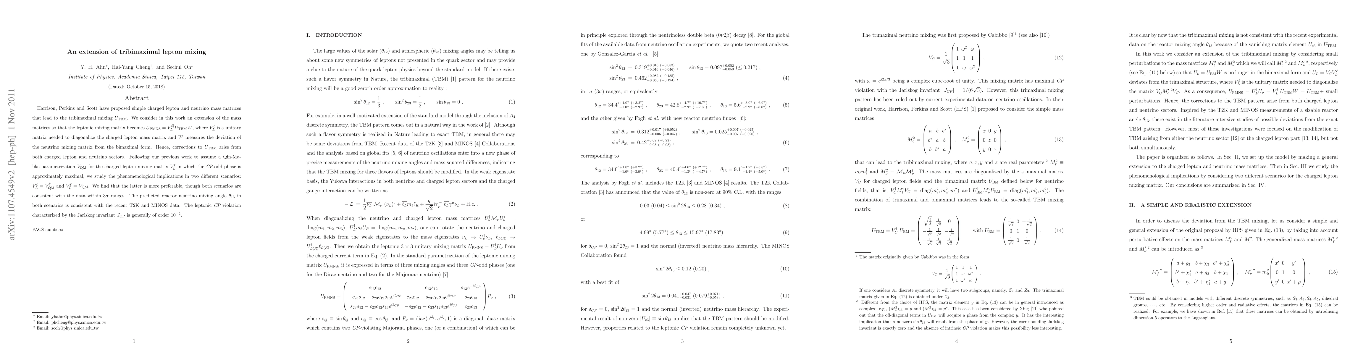 This paper extends the tribimaximal lepton mixing matrix by modifying charged lepton and neutrino mass matrices, resulting in a new leptonic mixing matrix $U_{\rm PMNS}$. The study finds that scenarios with a Qin-Ma-like parametrization for the charged lepton matrix, specifically $V_L^\ell=V_{\rm QM}$, fit experimental data better, while predicting $\theta_{13}$ consistent with recent neutrino oscillation experiments and CP violation of order $10^{-2}$.