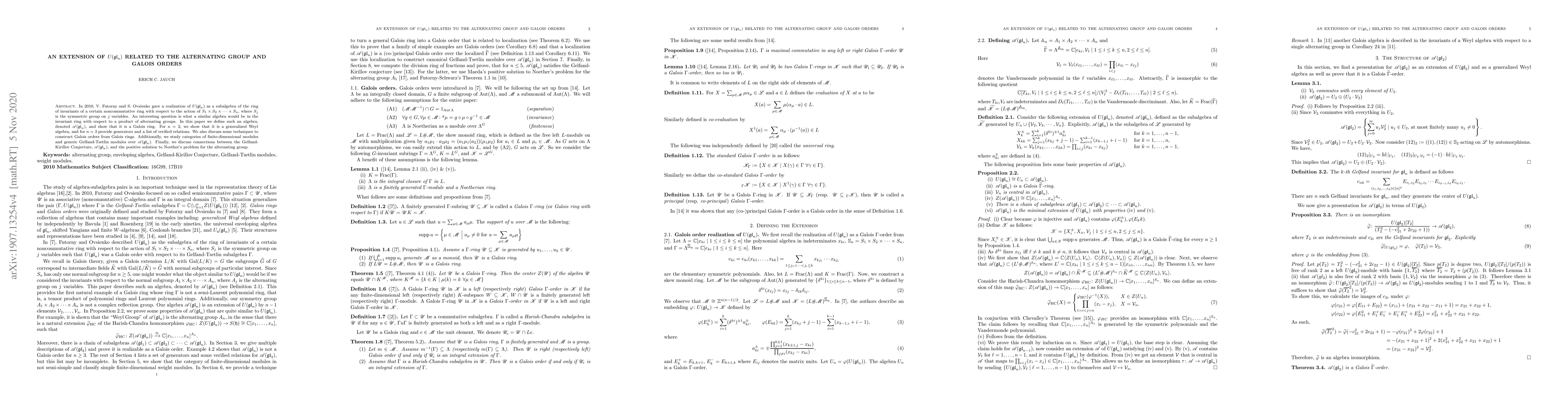 This paper extends the realization of $U(\mathfrak{gl}_n)$ as a subalgebra of the ring of invariants under the action of symmetric groups, defining a new algebra $\mathscr{A}(\mathfrak{gl}_n)$ based on alternating groups. It demonstrates $\mathscr{A}(\mathfrak{gl}_n)$ as a Galois ring, with specific cases analyzed for $n=2$ and $n=3$, and discusses module categories and connections to the Gelfand-Kirillov Conjecture.