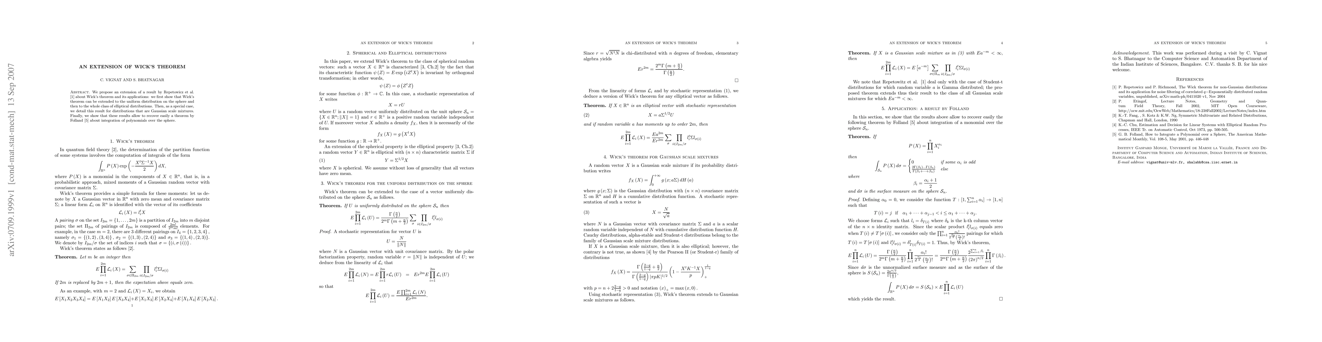 This paper extends Wick's theorem to uniform and elliptical distributions, particularly focusing on Gaussian scale mixtures, and uses these extensions to simplify a theorem by Folland regarding polynomial integration over the sphere.